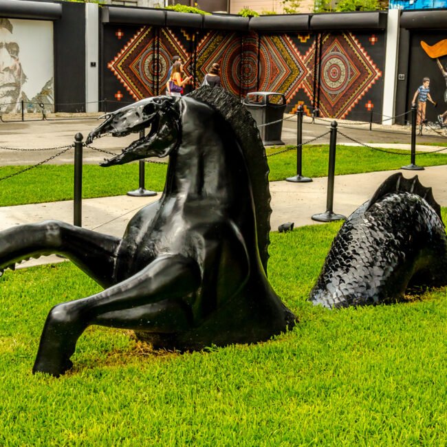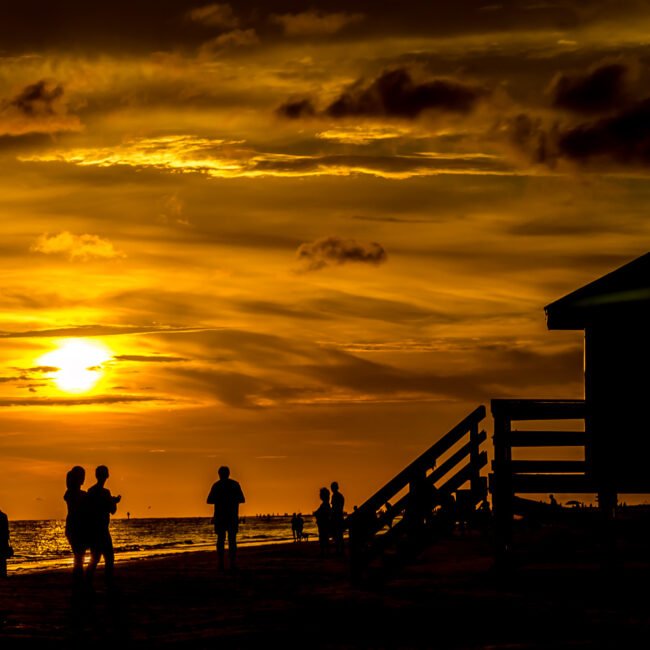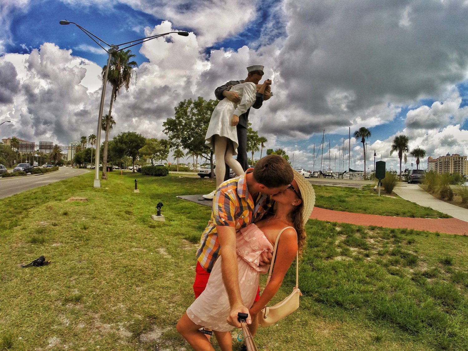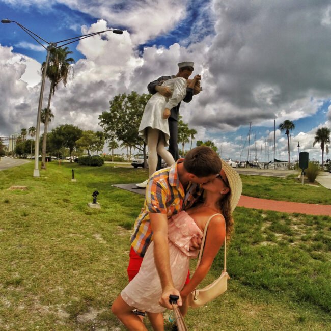 At night, the pain of the sunburned back and shoulders was fully manifested. I knew that I would have a hard time in the sun for the next few days. That’s also why the beach was less attractive to us and, if so, only towards evening. So we had plenty of time to explore the surroundings and started with a walk through the beautiful Venice district. Perfectly maintained parks and lakes, beautiful palm trees, houses and complete peace. It’s great that through Airbnb you can also get to such places, where otherwise you can only see rich Americans. The owner of the house we stayed in was Chinese (that’s just from the photos, we didn’t meet him at all), but he also had everything nice, clean and well-equipped. The next steps led us back to Sarasota, where we took a larger tour of the city, but we didn’t discover anything extra there. What we liked, however, was the harbour and the promenade around the sea with nice sculptures. We hid in the harbour for a while from a short rain, and after the weather cleared up, we finally got to Siesta Key. A beautiful, huge beach with completely white sand and lifeguard booths. We enjoyed the warm sea and the sunset.