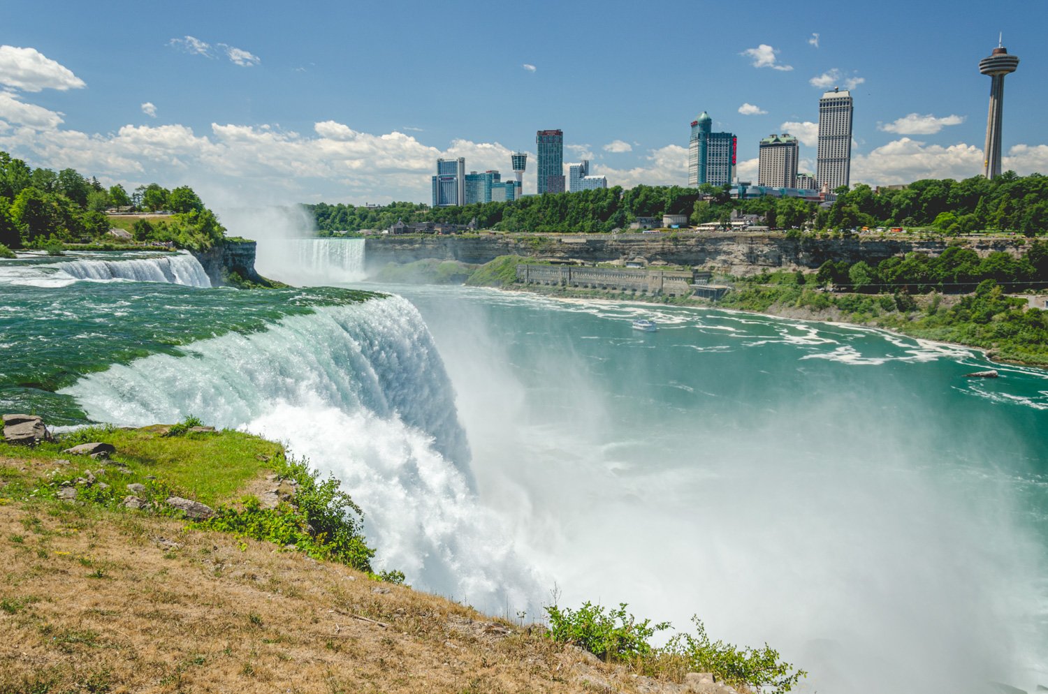 Because we slept just before Buffalo, a long journey to Niagara Falls didn’t await us in the morning. But the endless traffic jams and snail’s pace still meant that we arrived at the place before noon. Saturdays and weekends, in general, are certainly not a good time for any American sights, where several thousand people head. We parked in the first possible parking lot for $20 for the whole day. It is said to be better to see Niagara Falls from the Canadian side. We were not allowed to drive to Canada, and we didn’t even think about regretting it in those traffic jams. The view was incredible, even from the American side, with Toronto in the background.