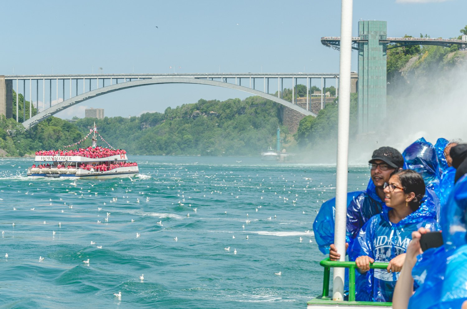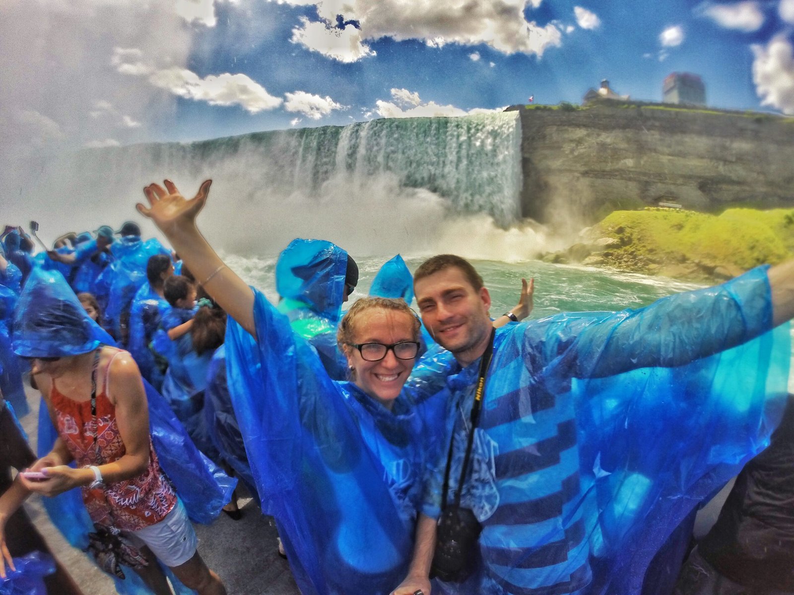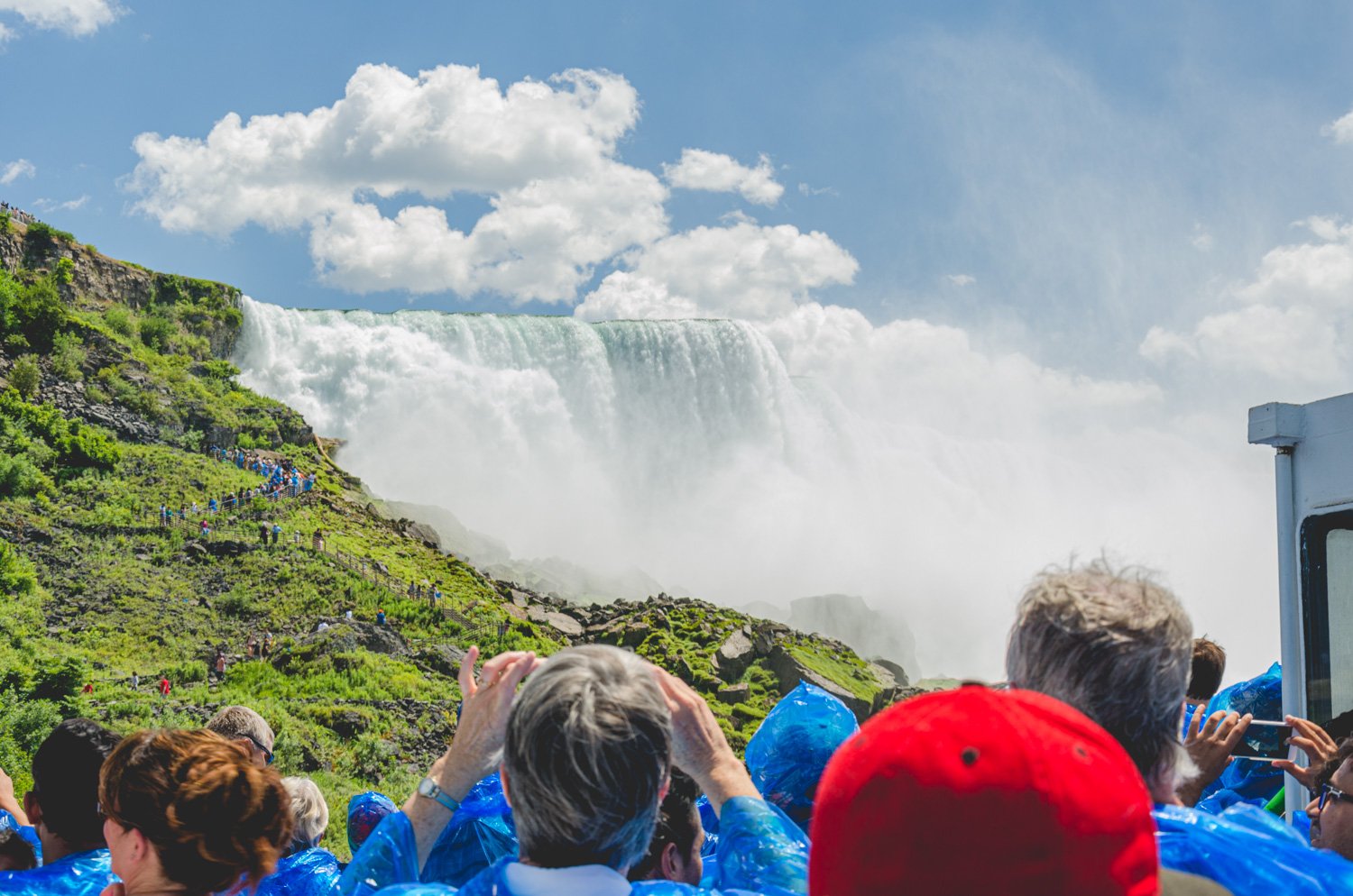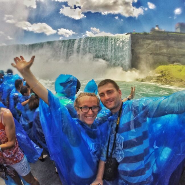 Before the cruise, we received blue raincoats, which, if you don’t want to be completely wet, it’s really better to put on. Tourists boarding the same boats from the Canadian side received red raincoats, so while waiting and watching the boats under the waterfalls, we could at least conclude that the routes were the same. We enjoyed the cruise, took some photos and videos, our electronics, and we got a little wet, but we were happy. Finally, we had the best views of the waterfalls from the bridge above the “harbour” and access to some paths where we would not have gotten as non-payers. That’s where our best photos were taken. It paid off. Niagara Falls must be seen and experienced.
