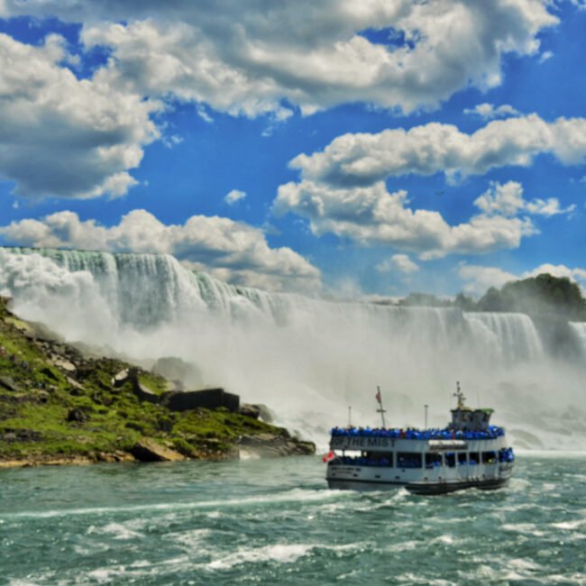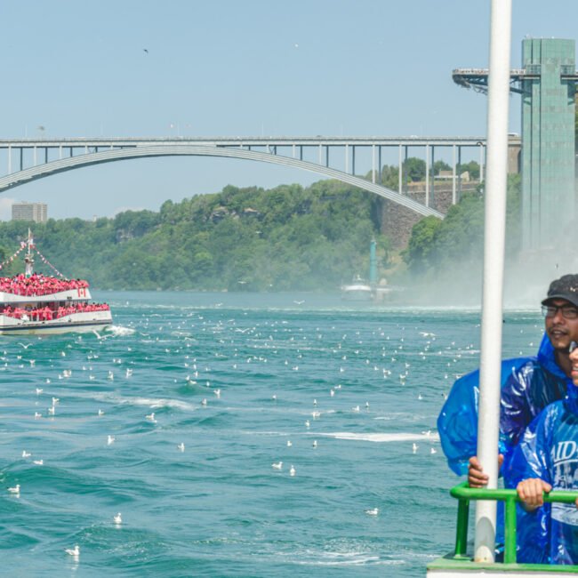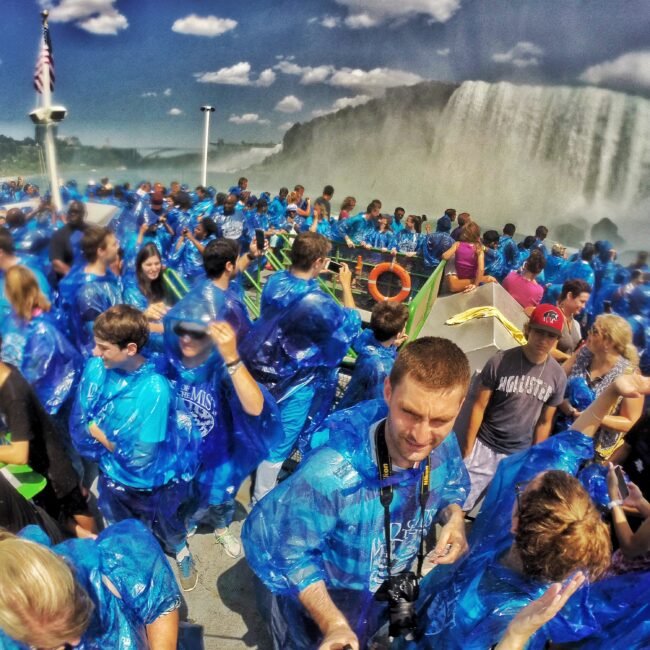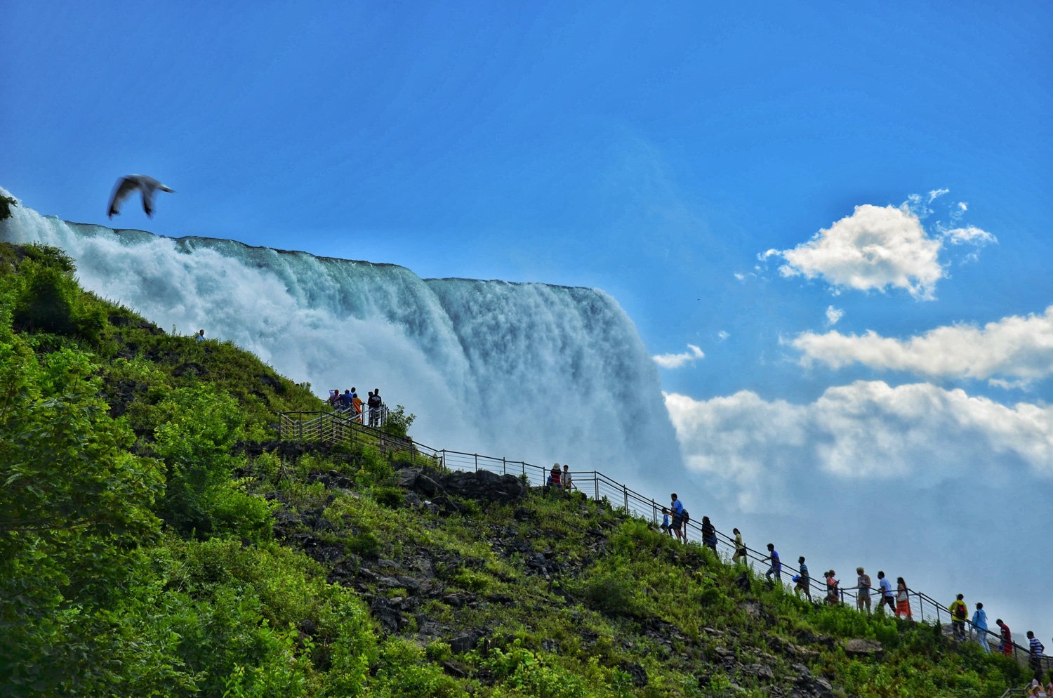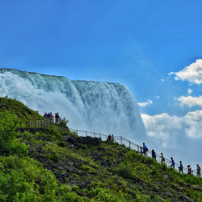 Before the cruise, we received blue raincoats, which, if you don’t want to be completely wet, it’s really better to put on. Tourists boarding the same boats from the Canadian side received red raincoats, so while waiting and watching the boats under the waterfalls, we could at least conclude that the routes were the same. We enjoyed the cruise, took some photos and videos, our electronics, and we got a little wet, but we were happy. Finally, we had the best views of the waterfalls from the bridge above the “harbour” and access to some paths where we would not have gotten as non-payers. That’s where our best photos were taken. It paid off. Niagara Falls must be seen and experienced.