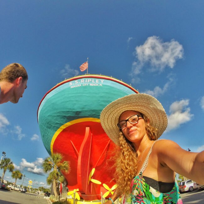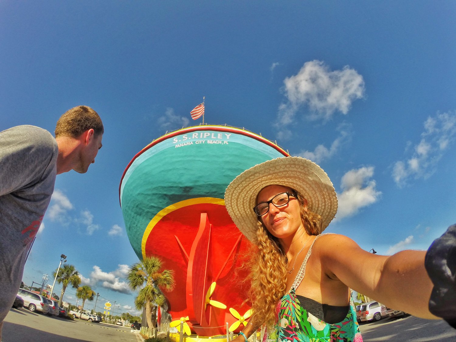 Edit TemplateIn Panama City Beach, there should be only a few freely accessible beaches and only one or two free parking lots. We headed straight to one of them, outside the resorts. We were there early, already after nine in the morning, so the parking lot was still empty and there were only a few people on the beach. Before entering the beach, there was a house with showers and toilets, which was quite useful for us as homeless people. After the desired rest and perhaps a short sleep, we went on foot to explore the surroundings, buy something and eat. Overall, it seemed quite quiet, with somewhat few people, the attractions and shops were half-empty, and it didn’t look like any big parties either. That’s when we started to realise that we were there off-season, which was really visible. The season in Florida starts in December and lasts until April. Who knows what it looks like there at that time? I would only like to experience it out of pure curiosity, but if there are heads on heads, then the prices are double, and maybe there is a problem with parking, I probably wouldn’t be very satisfied. It’s hard to say, but we liked it as we experienced it. Off-season, we were just risking bad weather, storms and rain. But so far, we have had hot and sunny weather. Too much. After a year spent in England, where our skin barely saw the sun, it experienced an abnormal shock here. With all-day sunbathing without a shirt, my shoulders and back mainly suffered. I didn’t really perceive it in those moments, but in a few days, the damage, burns and pain were fully revealed. Lenka was better off, but even her skin peeled off after a few days. We underestimated it and were also sorry that we are not in the sun more often, and our skin is not used to it. We definitely want to fix that in the future…