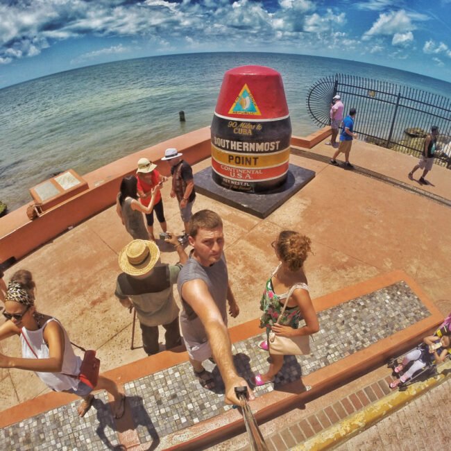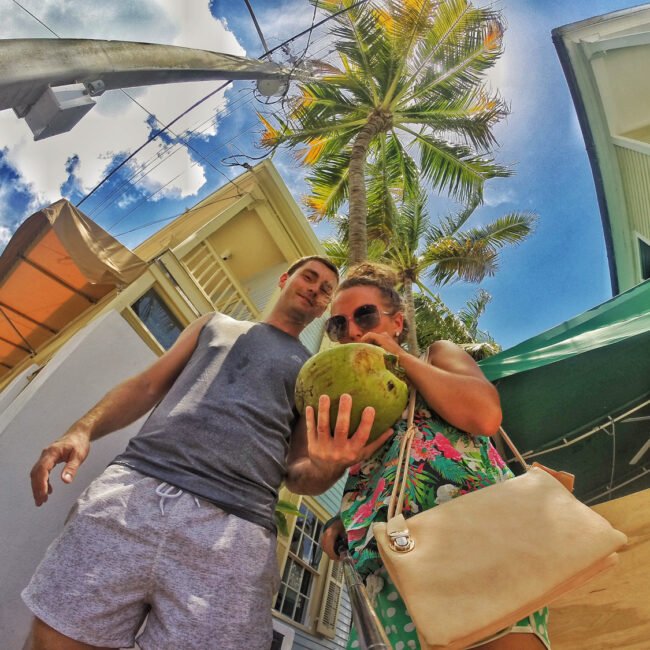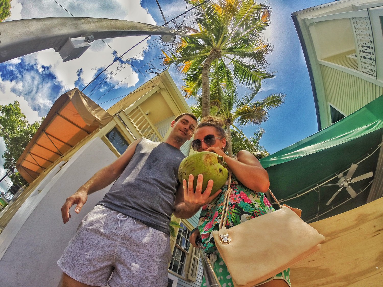 We had the whole day in Key West, and we didn’t want to spend it just lying on the beach. Before noon, we strolled through the streets, looked at various shops, which were mainly of interest to Lenka, and had a drink that every second tourist there drank, a coconut in hand with a straw. Key West is home to the southernmost point in the USA, and of course, we didn’t want to miss the chance to take a photo of it. Looking at the line of tourists waiting for a selfie with a buoy symbolising this point, I lost my appetite. We solved it by standing on a nearby wall and taking a photo with the GoPro. During these wanderings through Key West, we couldn’t help but notice the ubiquitous roosters. Roosters on sidewalks, roosters on roads, parking lots, cars… They were really everywhere and a lot, probably more than dogs in Romania. At first, it surprised us, but over time, we got used to it and had fun with them.
