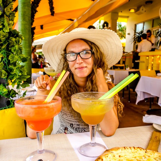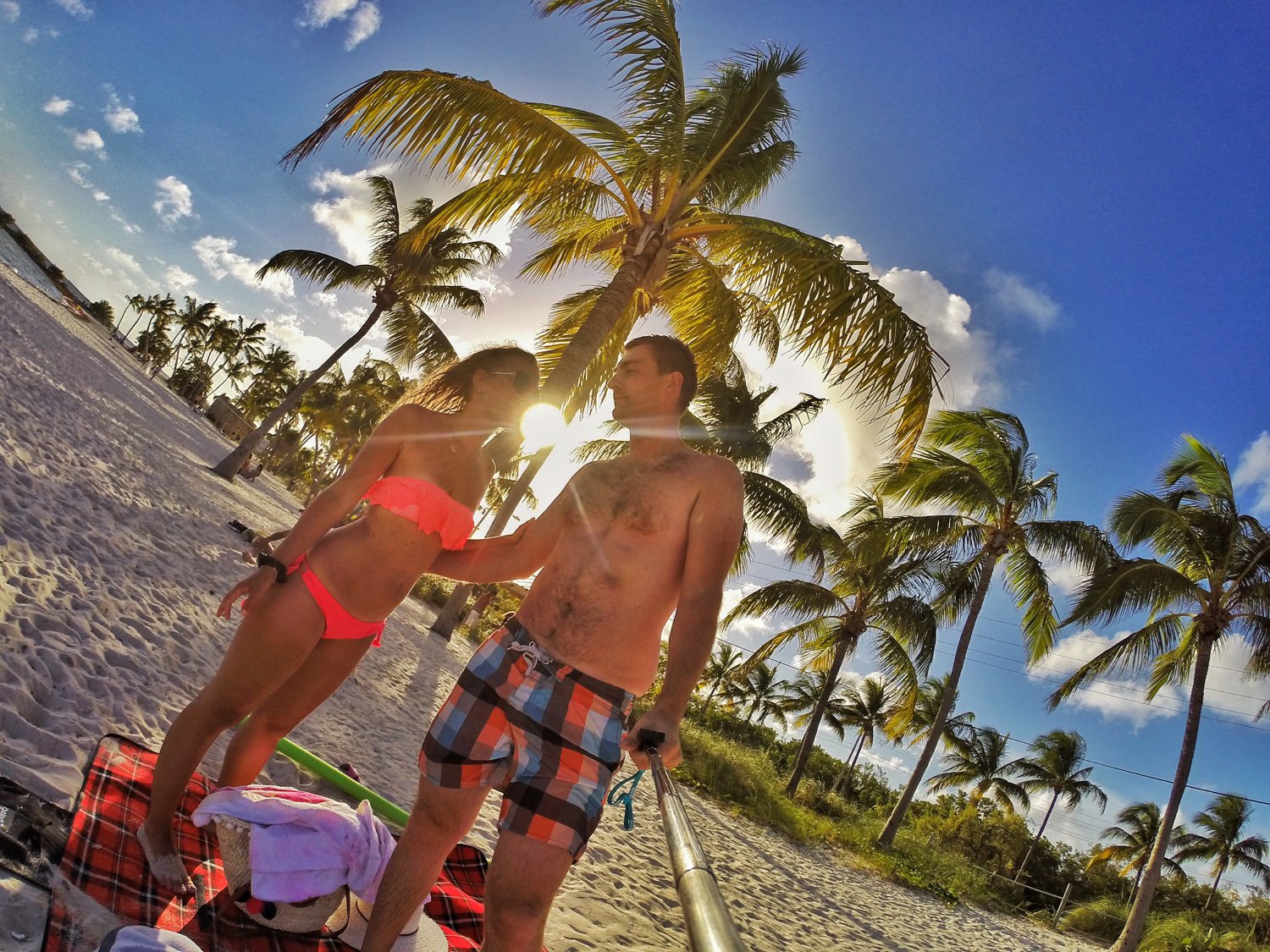 Of course, Miami Beach is worth experiencing. Among various expensive parking lots, we found a parking house where the price was acceptable, $1 per hour. On the way to the beach, we stopped for a drink in one of the many establishments on Ocean Drive. After the drink, we continued along the street and watched people drinking mixed drinks from huge glasses. It wasn’t a very cheap affair, but we were tempted by a waiter who offered us two shots of tequila if we sat down in his establishment. We couldn’t resist, and we already had two mega glasses in front of us with some sweet, but I must say, really strong drink. We also ordered a pizza, and I reminded the waiter that he had forgotten about the tequila. Lenka had had enough and hadn’t even finished her drink yet, so I drank both tequilas. Well, it was enough for us; we actually got drunk. In this very good mood, since the sun was peeking out from behind the clouds for a while, we finally got to the beach. It was almost 6 o’clock, so we properly enjoyed that moment until the evening, and without shame, we frolicked like, hmm, monkeys. The sea was finally refreshing and clean, the beach huge and beautiful, with typical lifeguard booths.