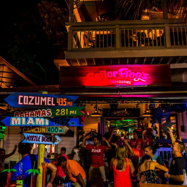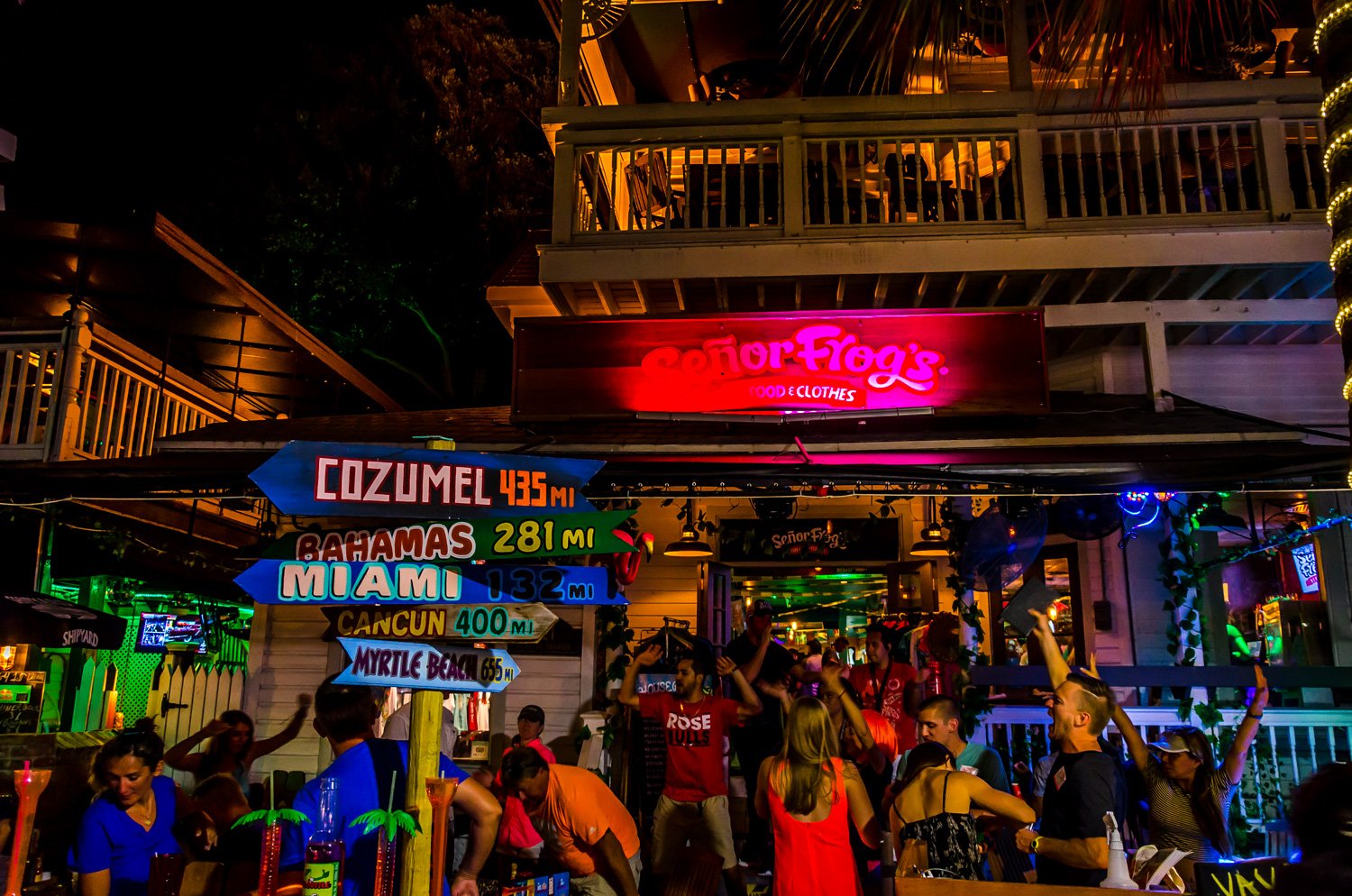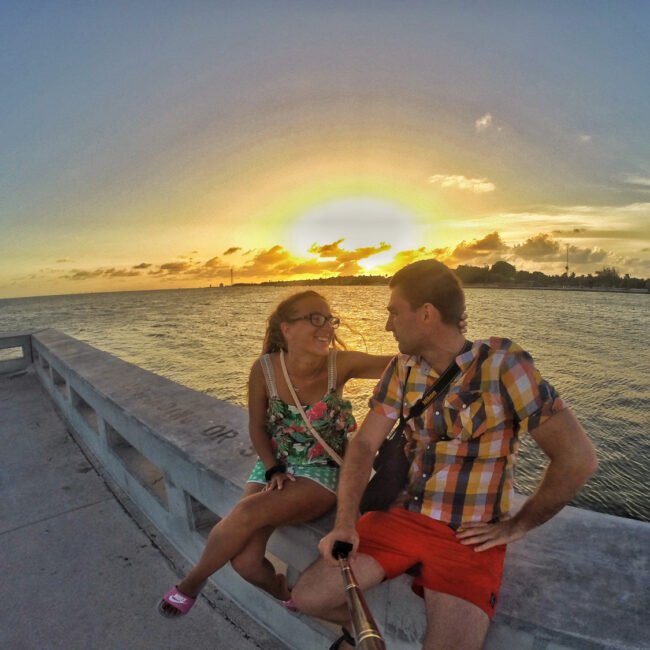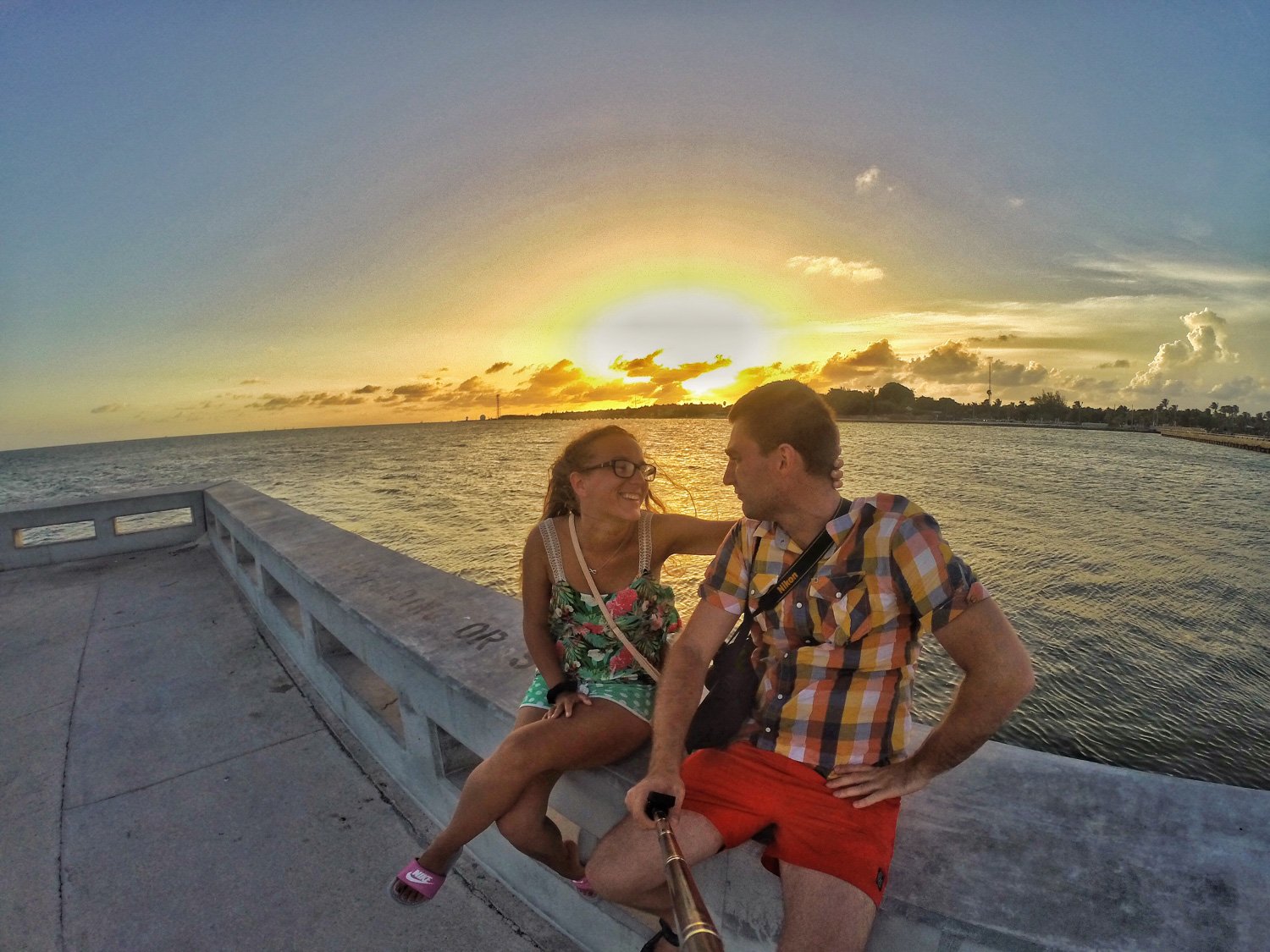 Edit TemplateAgain, we didn’t know where we would sleep tonight, and we considered staying right on the beach under a palm tree or in one of the gazebos. With the arrival of evening, however, the beach became quite deserted and only a few individuals remained, with whom we probably wouldn’t want to come into contact at night. And another thing that discouraged us a lot was the ban on parking overnight on the street where our car was parked, and it would remain the only one far and wide. In the end, we decided that we would stay in Key West for the evening and then try to spend the night on some of the small beaches that we saw along the way and had stored in the GPS. First, we went to the huge concrete pier to enjoy the sunset. A strong wind started to blow, and we felt that the weather would probably get worse for the next few days. After dark, we went to the centre of tourism on Duval Street. This street is full of bars, restaurants, music and people. In one of the many establishments, we also tasted the fabled Key Lime Pie, i.e. lime pie. It was quite expensive, but also good, and it is one of the things that you simply must have in Florida. And maybe they really are the best in this place. Otherwise, Key West is a classic, bustling and expensive tourist destination. I like the atmosphere of such places, but for us to fit in there and start behaving and spending like other tourists, we would need a larger group of people. As a single couple, romantic Sarasota was more welcoming to us. We walked the street up and down, took pictures of interesting things, mainly various illuminated and people-filled bars, but we didn’t enter any of them.