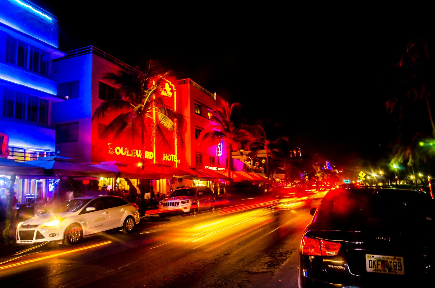 Edit TemplateWe returned to the car after dark, and since I had already sobered up a bit, we were ready to continue our journey. Lenka reproached me a bit and still reproaches me that she was most looking forward to Miami Beach and enjoyed it the least. I don’t see it that tragically, and I say that it was just right. We saw what you needed to see there, and we were actually lucky that we got to the beach at all, because it wasn’t raining at the time. If we had planned several days there, it would be a waste of time and money. Such tourist places full of consumption are money vacuums, in my opinion, for little music. After all, we paid $45 for just that one, approximately one-hour sitting on the terrace in the aforementioned establishment. I even wanted to be an obedient tourist and left a tip. Only after a few days did I find out that that establishment had withdrawn two sums from my card, one including the tip and the other without. I had to deal with the given establishment and my bank for several months before one payment was returned to me. Even though I was asking for the smaller one, the larger one came back, but that’s one thing. I don’t like the frequent way of paying by card in America at all. The waiter took my card with him and came back with a receipt, on which I was supposed to write the amount of the tip with my signature, and only after that was the given amount supposed to be withdrawn from the card. The fact that I was charged incorrectly only happened once, and it turned out well in the end, but every time I paid in this style with a signature and without a PIN code, it evoked a feeling of mistrust in me. Anyway, spending half of the daily budget in an hour can happen from time to time during such travelling, but definitely not every day. I comforted Lenka that we have to come to Miami Beach in winter, when there is a season, the weather will be better, and we will be able to enjoy it a little more. Cheap flights and accommodation can be obtained, and overall, a reasonable holiday can be made from it. This time, however, it was about something else… After getting into the car, we did not miss the opportunity to drive around the streets of Miami Beach again and again, this time in the dark and enjoy this place also in the light of the neons.