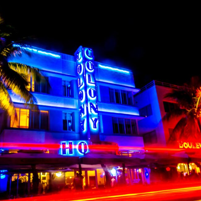 Edit TemplateWe returned to the car after dark, and since I had already sobered up a bit, we were ready to continue our journey. Lenka reproached me a bit and still reproaches me that she was most looking forward to Miami Beach and enjoyed it the least. I don’t see it that tragically, and I say that it was just right. We saw what you needed to see there, and we were actually lucky that we got to the beach at all, because it wasn’t raining at the time. If we had planned several days there, it would be a waste of time and money. Such tourist places full of consumption are money vacuums, in my opinion, for little music. After all, we paid $45 for just that one, approximately one-hour sitting on the terrace in the aforementioned establishment. I even wanted to be an obedient tourist and left a tip. Only after a few days did I find out that that establishment had withdrawn two sums from my card, one including the tip and the other without. I had to deal with the given establishment and my bank for several months before one payment was returned to me. Even though I was asking for the smaller one, the larger one came back, but that’s one thing. I don’t like the frequent way of paying by card in America at all. The waiter took my card with him and came back with a receipt, on which I was supposed to write the amount of the tip with my signature, and only after that was the given amount supposed to be withdrawn from the card. The fact that I was charged incorrectly only happened once, and it turned out well in the end, but every time I paid in this style with a signature and without a PIN code, it evoked a feeling of mistrust in me. Anyway, spending half of the daily budget in an hour can happen from time to time during such travelling, but definitely not every day. I comforted Lenka that we have to come to Miami Beach in winter, when there is a season, the weather will be better, and we will be able to enjoy it a little more. Cheap flights and accommodation can be obtained, and overall, a reasonable holiday can be made from it. This time, however, it was about something else… After getting into the car, we did not miss the opportunity to drive around the streets of Miami Beach again and again, this time in the dark and enjoy this place also in the light of the neons.
