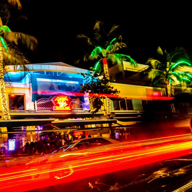 Edit TemplateWe returned to the car after dark, and since I had already sobered up a bit, we were ready to continue our journey. Lenka reproached me a bit and still reproaches me that she was most looking forward to Miami Beach and enjoyed it the least. I don’t see it that tragically, and I say that it was just right. We saw what you needed to see there, and we were actually lucky that we got to the beach at all, because it wasn’t raining at the time. If we had planned several days there, it would be a waste of time and money. Such tourist places full of consumption are money vacuums, in my opinion, for little music. After all, we paid $45 for just that one, approximately one-hour sitting on the terrace in the aforementioned establishment. I even wanted to be an obedient tourist and left a tip. Only after a few days did I find out that that establishment had withdrawn two sums from my card, one including the tip and the other without. I had to deal with the given establishment and my bank for several months before one payment was returned to me. Even though I was asking for the smaller one, the larger one came back, but that’s one thing. I don’t like the frequent way of paying by card in America at all. The waiter took my card with him and came back with a receipt, on which I was supposed to write the amount of the tip with my signature, and only after that was the given amount supposed to be withdrawn from the card. The fact that I was charged incorrectly only happened once, and it turned out well in the end, but every time I paid in this style with a signature and without a PIN code, it evoked a feeling of mistrust in me. Anyway, spending half of the daily budget in an hour can happen from time to time during such travelling, but definitely not every day. I comforted Lenka that we have to come to Miami Beach in winter, when there is a season, the weather will be better, and we will be able to enjoy it a little more. Cheap flights and accommodation can be obtained, and overall, a reasonable holiday can be made from it. This time, however, it was about something else… After getting into the car, we did not miss the opportunity to drive around the streets of Miami Beach again and again, this time in the dark and enjoy this place also in the light of the neons.
