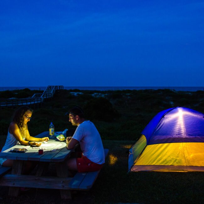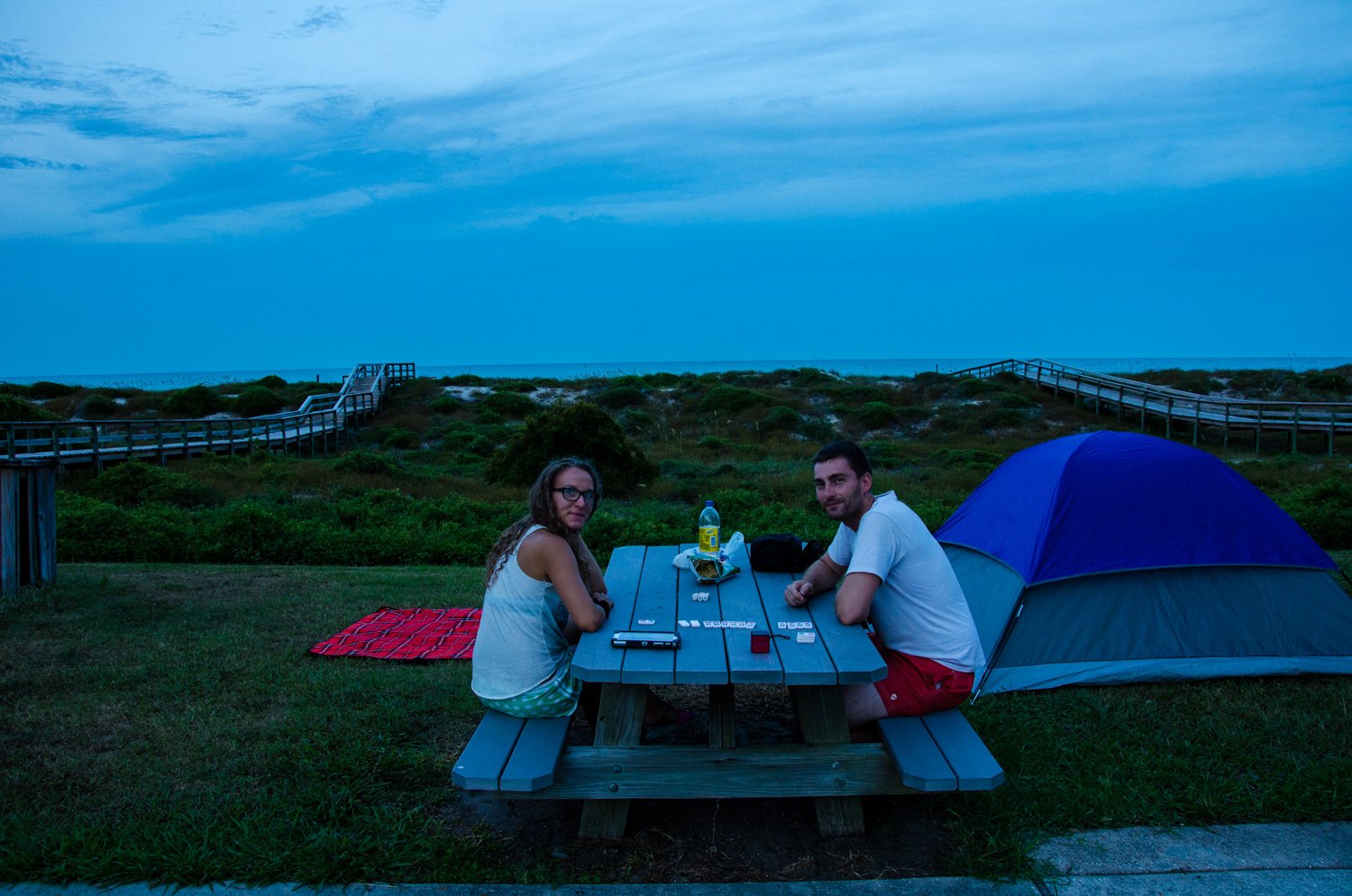After a full day of “relaxing” in the sun and getting into the hot car, we were quite looking forward to, finally, the first camping and nighttime cooling. I remembered that there should be plenty of opportunities for camping in the area, so we visited the local Walmart just before dusk to buy something for tonight and a possible barbecue. After connecting to the internet, however, I found out that the abundance of primitive camps is in a quite distant national forest (Apalachicola National Forest). There were some places closer too, so of course we chose them and wanted to try these. Only after loading into the GPS did I find out that even those closer places were about 40 minutes away from us, and we probably won’t make it before dark. Here we clearly neglected the preparation, and our idea that we would go a few kilometres away from the sea and get to a forest behind some village was simply completely wrong. American distances are just different, it seems that getting somewhere always takes at least an hour. Unfortunately, this was constantly repeated during the entire trip. I precisely calculated the long distances, planned them, and they worked out great, but when we had to get somewhere that we thought was only a short distance, we were almost always surprised by how far it actually was… And so for the first time, purely due to our mistake, since we had enough time to leave earlier, in stress about where we would actually sleep, we went to look for something. The road led us to a forest full of swamps, pools and insects. After arriving at the coordinates, it would have been possible to camp, but what I didn’t like were the signs prohibiting overnight stays. In addition, a car appeared behind us, stopped a little away from us, and we absolutely didn’t know what to do. Whether to pitch a tent, or at least sleep in the car, or leave. I didn’t have a good feeling about it, Lenka was scared, and so we decided to look for the second place, which was supposed to be nearby. It was more hidden in the forest, but we didn’t see much there and couldn’t imagine what the surroundings looked like. It’s a pity that we didn’t meet at least someone who was already camping there at these two places. But even so, I think that the only reason why we failed camping this night was the darkness. I believe that if we came to one of these places in daylight, we would dare to pitch the tent, and the fact that it would then be terrifying after dark, either because of the solitude in the forest, or because of the presence of lights from strange cars, we would certainly not solve by leaving.