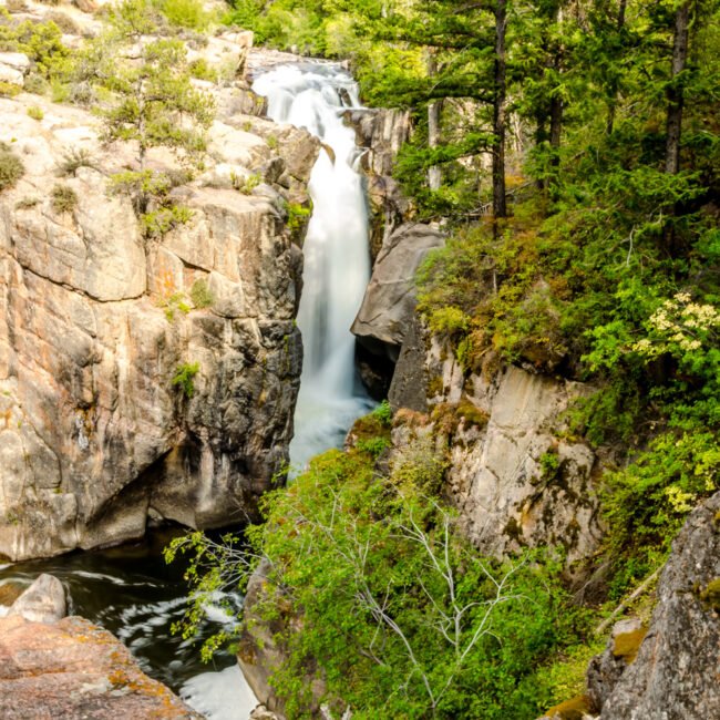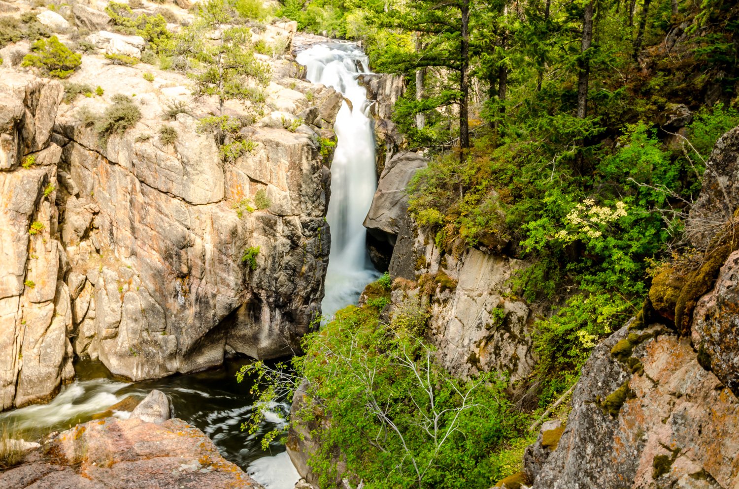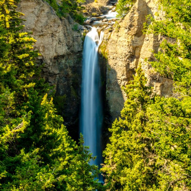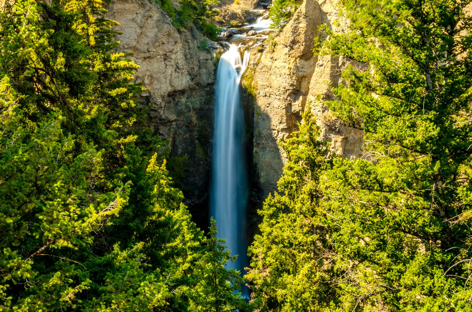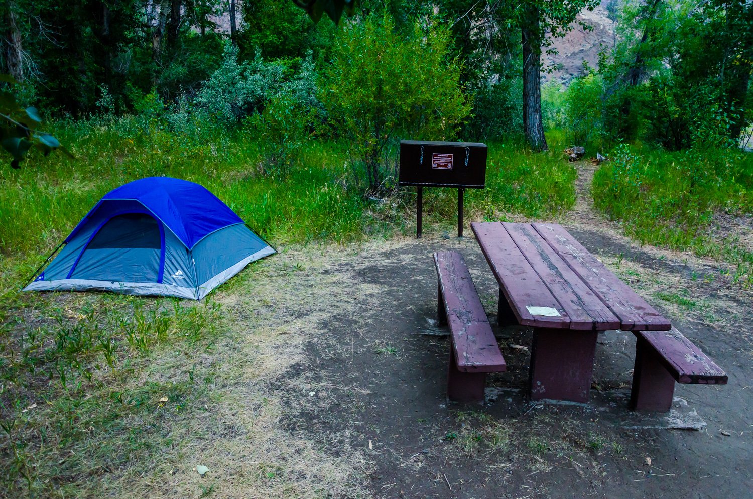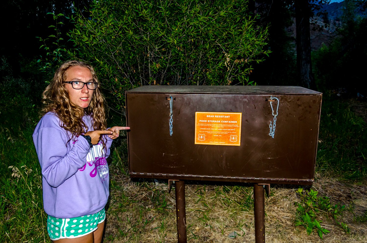 From Wall to Yellowstone, we had 516 miles (830 km) and roughly 8 and a half hours of driving. The goal was to only get to the camp before the gates of the national park, spend the night and leave the tour for the next day. It turned out as it should, the road was okay, even with a stop at some waterfalls, and the camp was great. We knew that there would be a fee of $10 for an overnight stay here, which is paid in camps that someone also takes care of, are organised and where there is at least a toilet, drinking water, or some equipment. Here were even two toilets, and each site had a fireplace, a wooden table with benches and a metal container for storing food as a prevention against bears. There were signs and inscriptions everywhere that we were in an area with a high incidence of bears, that we should pay attention to food and what to do in the event of contact with a bear. We encountered something like this for the first time, and it was a bit frightening. We studied everything, talked about it, and I scared Lenka a little. I remembered the fairy tale where Yogi Bear steals picnic baskets from tourists, and only now did I realise that this really happens here. Even though it might seem quite dangerous to camp here, the two basic things again helped us to be sure of what we were doing, and that was that we were not alone here and that we came in daylight. I’m glad that at least here it worked out, because later we had quite a problem managing to look for accommodation in daylight. Here we even managed to look around the area, and at one of the fireplaces we found a pile of usable wood for the fire, which someone had left there. We didn’t hesitate and gathered some, and what we didn’t burn that night, we dragged around in the car. I was glad that the planning paid off, and this day went completely without stress, and everything was okay.