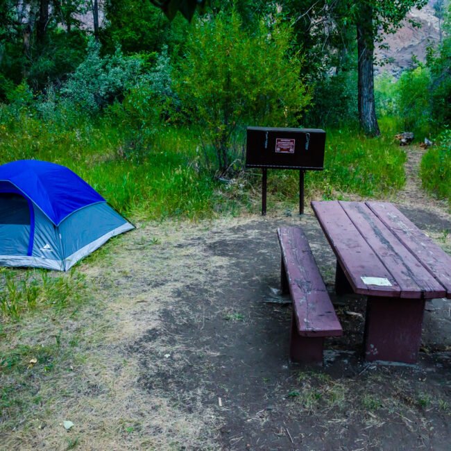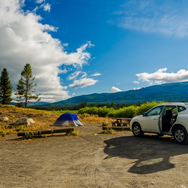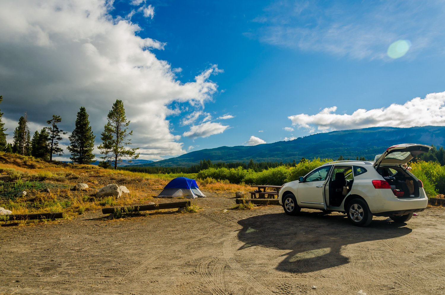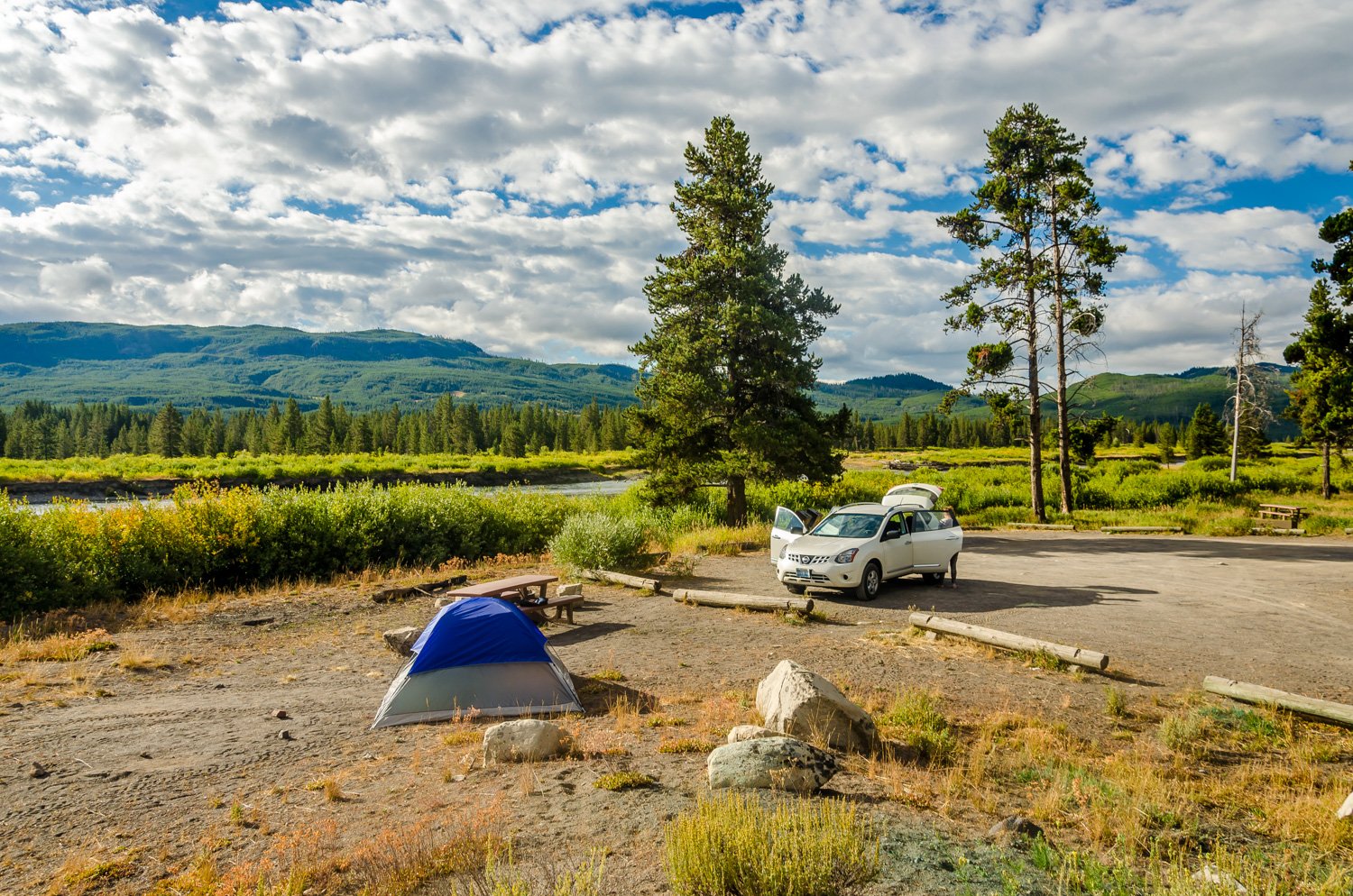 Yellowstone can also be passed through in one day, but two would be more ideal; the pace would be more comfortable, and we would also manage to bathe somewhere. There are plenty of camps there, but all are paid, so we wanted to sleep only in the selected primitive camp between Yellowstone and Grand Teton National Park, which was free. Because of the geyser Old Faithful, we sacrificed arriving at the camp in daylight, and it almost backfired on us. Although the camp was huge, in this case it was a bit of a disadvantage that it was divided into individual sites, where when it was marked that it was a site for 3 cars or caravans, it was simply no longer expected that someone else would come there, even though there was plenty of space there. And so all the sites were already marked as full. We didn’t see much in the dark, but in the end, we managed to find one abandoned bench, where, although one car was parked nearby, the people were probably sleeping in that car, and there was plenty of space for our tent. We didn’t have our food box, but we didn’t mind; we just wanted to spend the night, and it was possible here.