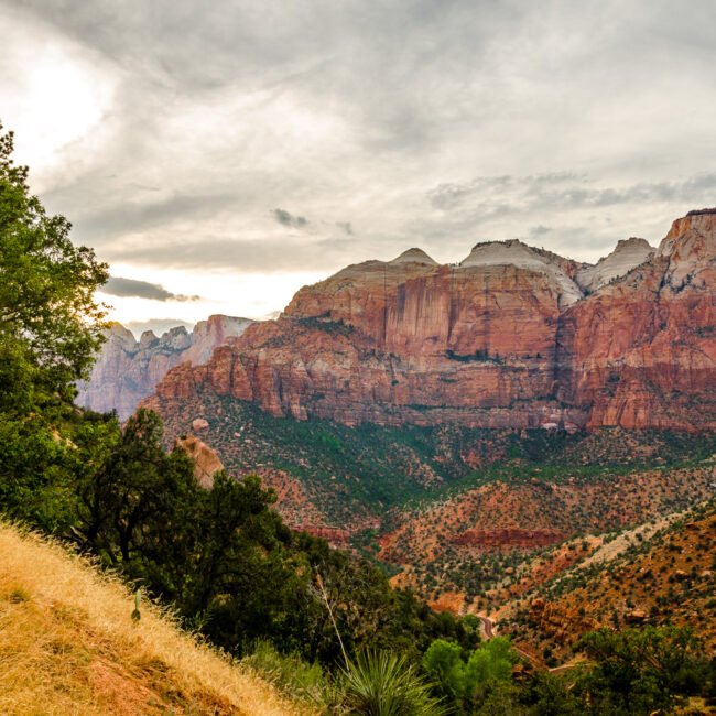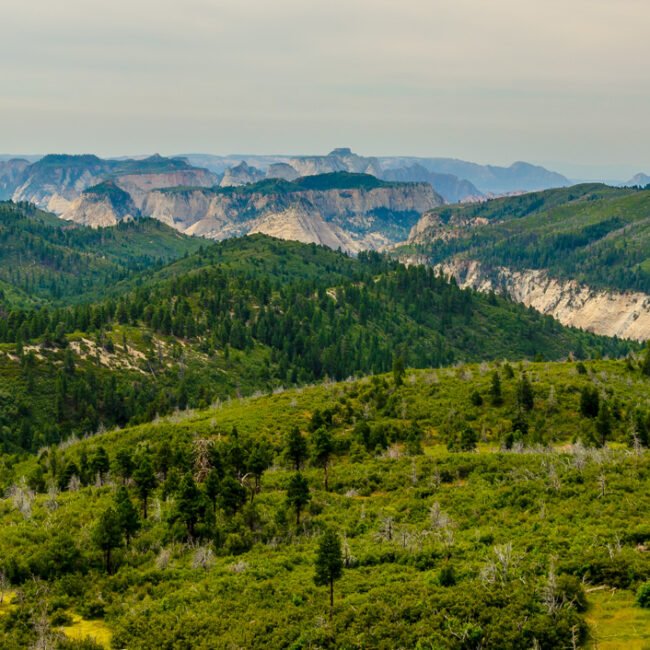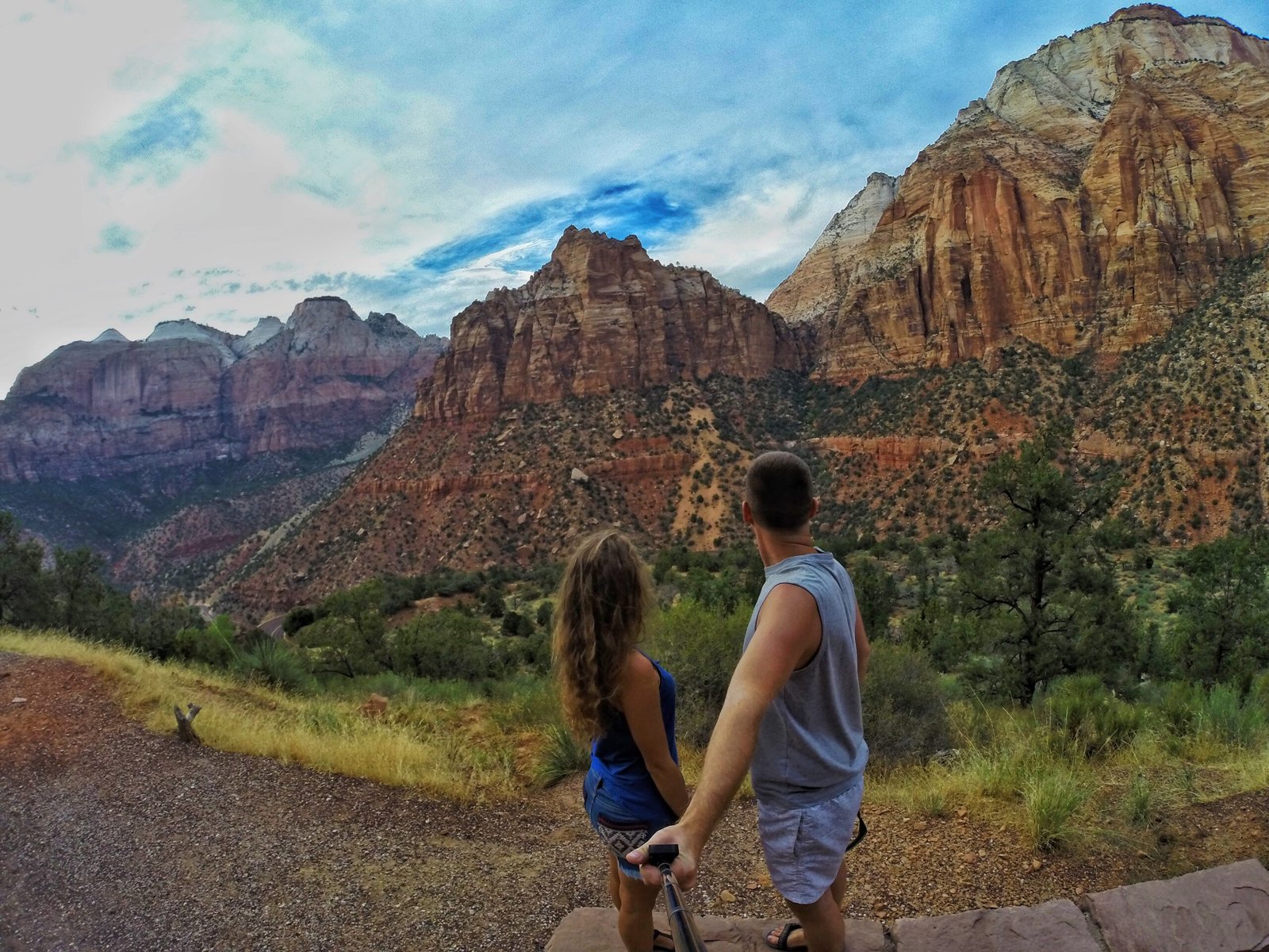 It’s not far from Zion to Las Vegas, we’ll make those 165 miles (265 km) in peace in 2 and a half hours, so we still have some time to stay in this rocky national park. We decided that we would continue along the road, in the vicinity of which we were camping, and we wanted to go around Zion from the other side than yesterday, hoping for some nice views. This road was supposed to lead us to the lake, which I also had saved as a possibility for camping. We did well that we didn’t choose to camp there, because we climbed over 2000 m above sea level, and it was still quite cold there, we would definitely be cold at night. There was also supposed to be a view of Zion at the nearby place, Lava Point, which could be easily reached by car. Although the view was good because of the altitude, it was not so interesting. We only saw the greening peaks of the rocky hills.