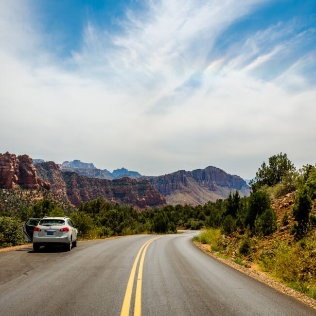 Edit TemplateAfter returning to the car, we still had a while before it started to get dark. During the ride in the bus, I noticed that before the turn-off onto the road where only these buses were allowed, there was another road where normal cars also drove. I was very tempted to go there and find out what was there, because according to the map, that road looked quite interesting. It turned out beyond all expectations. The road was incredible, full of turns, with a passage through a tunnel and with incredible views. For me, driving along this road was the most interesting thing in the entire Zion, and I rate it as one of the best roads I have passed in the USA.