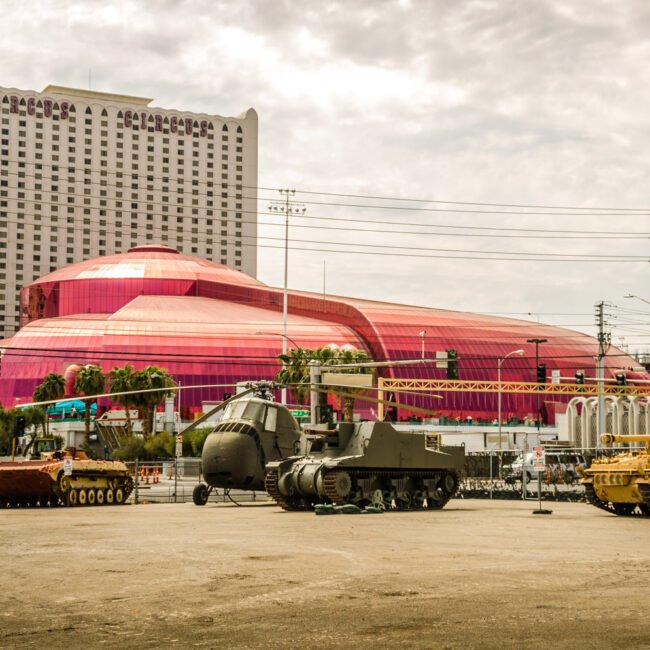 Right opposite our hotel, I noticed a yard where a lot of American military equipment was parked, and so we started the second day right there. In the yard, we had the opportunity to look at various jeeps, tanks and also helicopters. But probably the biggest attraction of this place, Battlefield Vegas, is the opportunity to shoot from any of the weapons they have available. Of course, for a not small fee, the price includes transportation by military jeep from the hotel and back. Definitely an interesting thing, but we didn’t have money to spare for something like that.
