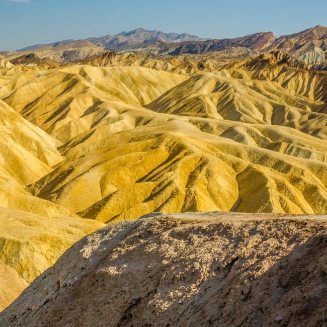 The biggest attraction of Death Valley is definitely Badwater Basin, which lies 86 meters below sea level and is thus the lowest point in America. We had an incredible 46 degrees Celsius there, and the heat really took its toll. Before arriving in this valley, we had the opportunity to look at it also from a height of almost 1700 m above sea level from a viewpoint called Dante’s View. We also stopped at Zabriskie Point, where there is a beautiful view of yellow rocky formations like something from another world. Next time, I would also go to see Scotty’s Castle, which, however, was almost destroyed in 2015 by a flood and is currently closed. We didn’t even know that then, but fortunately, we didn’t go there just because it would be a several-hour detour, and we didn’t have that much time.