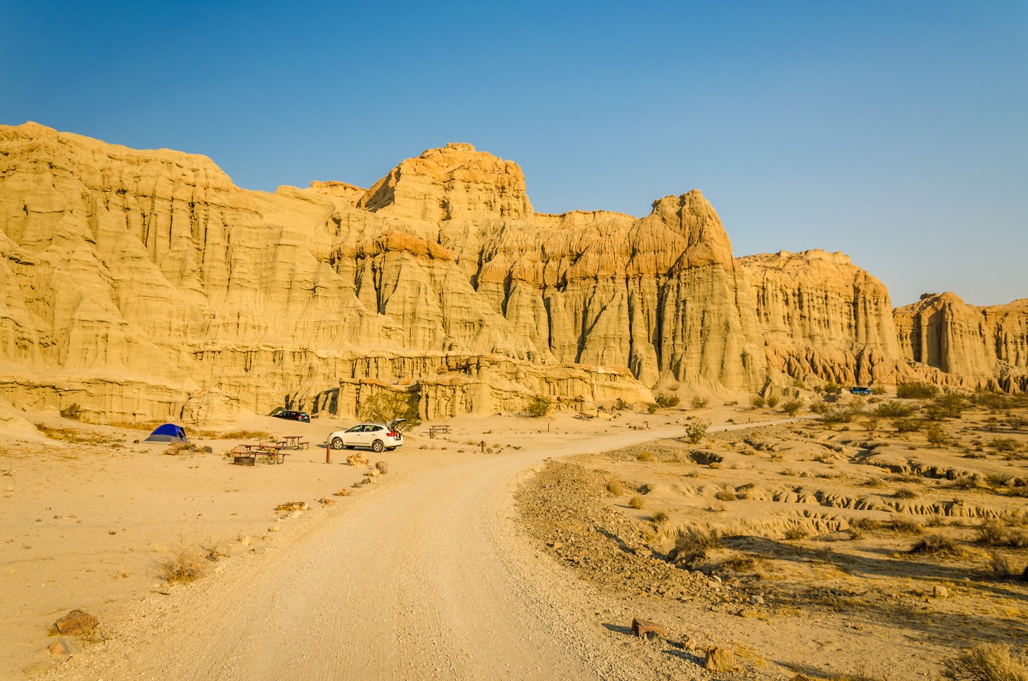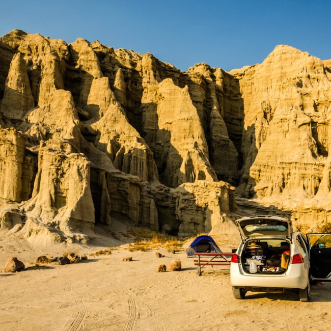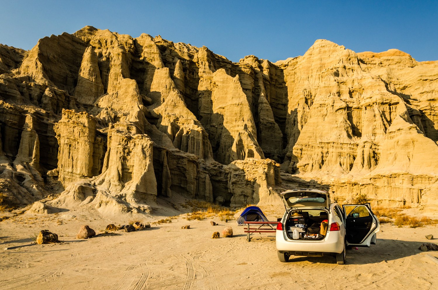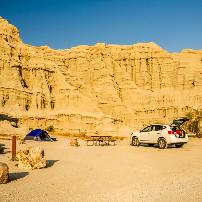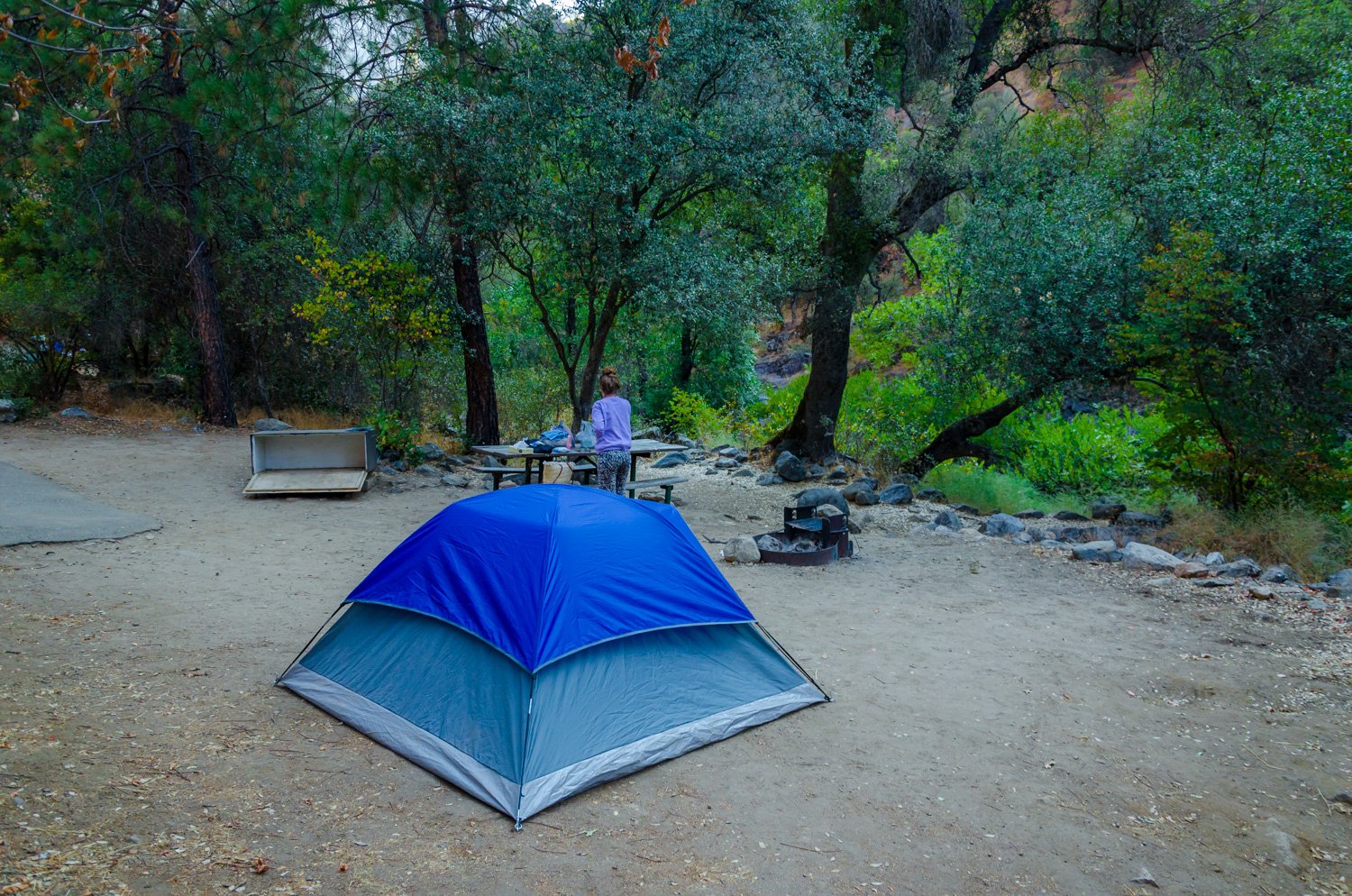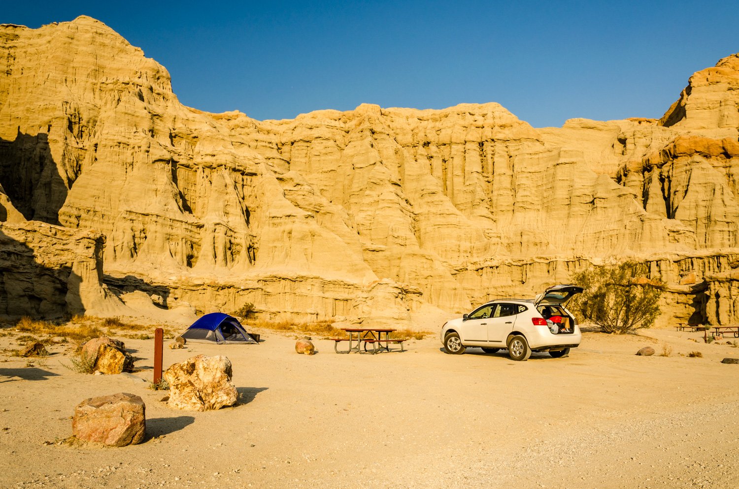 We had planned to get as close as possible to Sequoia National Park, which we wanted to visit tomorrow. After dark, I was already reconciled with the fact that I would be pulling as much as possible, and then we would just sleep in the car. But suddenly we passed a turn-off to Red Rock Canyon and camping. We didn’t understand what a place with the same name as we visited in the morning was doing here, but later we found out that this is just a state park and there is a huge camp here. That was, although for a fee, but since we came at night, we pretended that we didn’t know about the fee and went to look for a place to spend the night. Pitching the tent was quite complicated this night, since the wind was blowing terribly and we were not succeeding. In the end, it turned out well, and when we finally took a breath, we started to realise what a special place we were in. This camp was amazing, we were camping directly under huge rocks and enviously watched our tent neighbours with a fire, thanks to which a beautiful light and shadow show was taking place on these rocks. This place had a really great atmosphere, and in the morning, when we finally saw what kind of scenery we had, it only multiplied our feelings. The presence of running drinking water and toilets only enhanced the impression that we were at the best camp during our journey, and probably we would have to try many more camps to find something better and quasi for free.