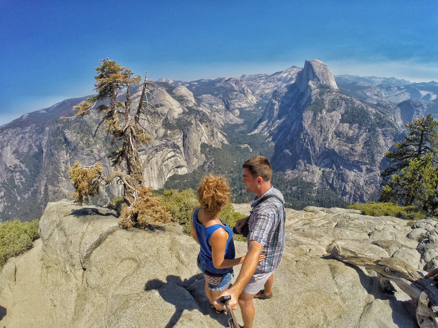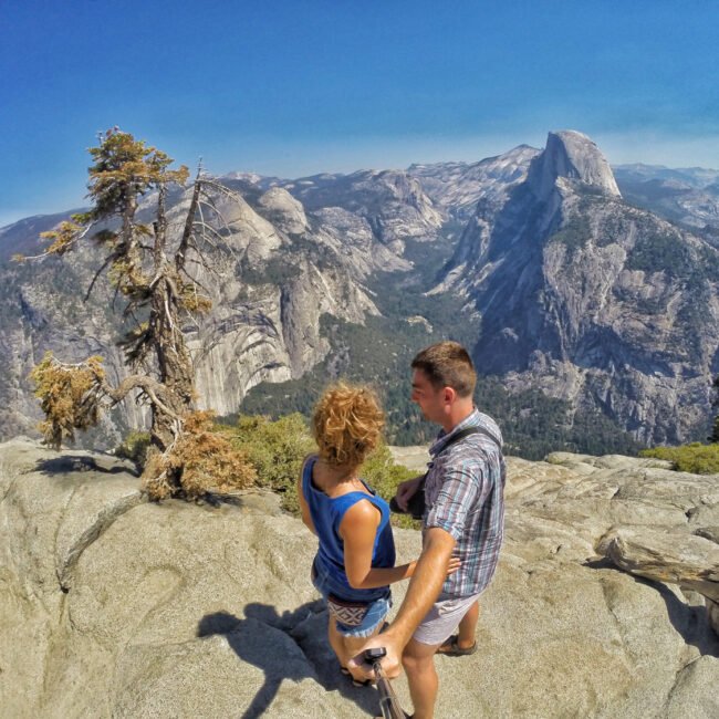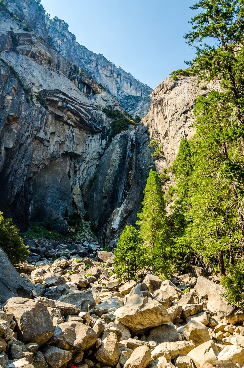 The biggest attractions of the park are huge rocks and beautiful views. This park can also be passed through with one circular road with several turn-offs. Along this road, there are many stops with views, hiking trails and park villages with camps. The most famous views include Tunnel View and Glacier Point, which definitely need to be seen with your own eyes and are so characteristic that later, when looking at any photograph from this place, you will immediately know what it is about. As in Sequoia, here you can also see huge sequoia trees and several waterfalls. However, waterfalls can also dry out completely in the summer, so only bare rocks awaited us after a short walk to Yosemite Falls.