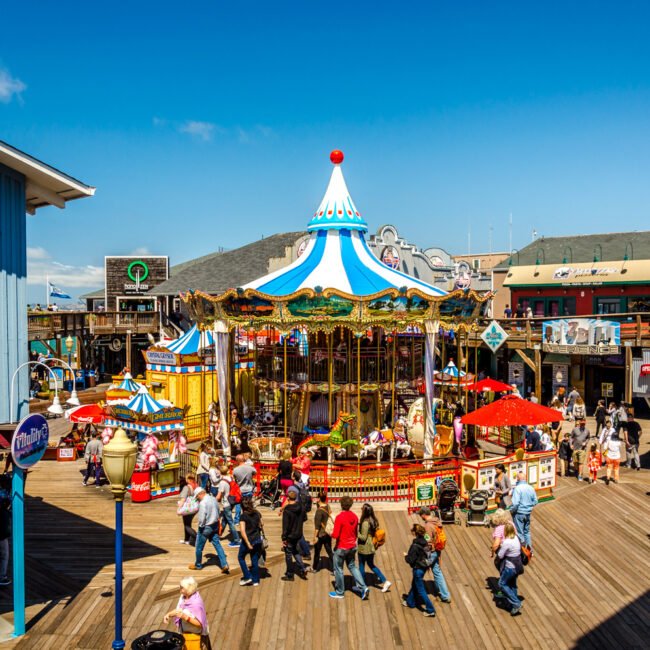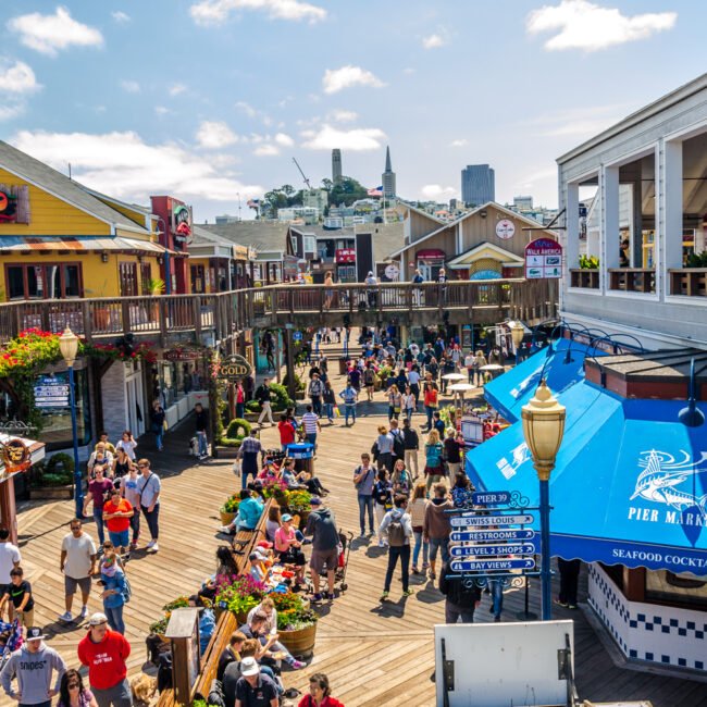 Our first stop was supposed to be Pier 39. Of the many piers that are located here, this was supposed to be the most interesting. We drove around it by car and saw with our own eyes that the parking situation would really be bad. When we were going on the second street south of the pier, along Bay St., one of the cars in front of us, parked along the road, left its place, and so I stopped there so I could look at the map and take a better look at the parking options. But we started to deal with this place where we were standing, because it looked like it was outside the paid zone, there were no lines on the road and no machines or markings along the road expressing the obligation to pay for such parking. We walked around the car for a while and looked for something that would refute or confirm our thinking. A guy went by, a bit of a weirdo, but he assured us that we can park here for free without any problems. A little unsure, but since we didn’t have anything else to cling to, we only took a camera and some small things and headed towards the Pier, which was supposed to be quite close. I have already mentioned several bad decisions during this road trip, but this decision, to leave the fully loaded car here, was definitely the worst during the entire trip. After a few minutes of walking, I had such a strange feeling, and I was overcome by uncertainty about whether I had locked the car. We were only just around the corner, so we turned around and repeatedly convinced ourselves that the car was indeed locked, as it always is with such feelings. This time, more certain and happier, we set off for our goal for the second time. On the way, I watched the parking cars, thought and was quite happy about the luck that someone had freed up a place for us right in front of our noses on the otherwise hopelessly full streets, and that we had again tricked the system a bit and saved where it seemed impossible.