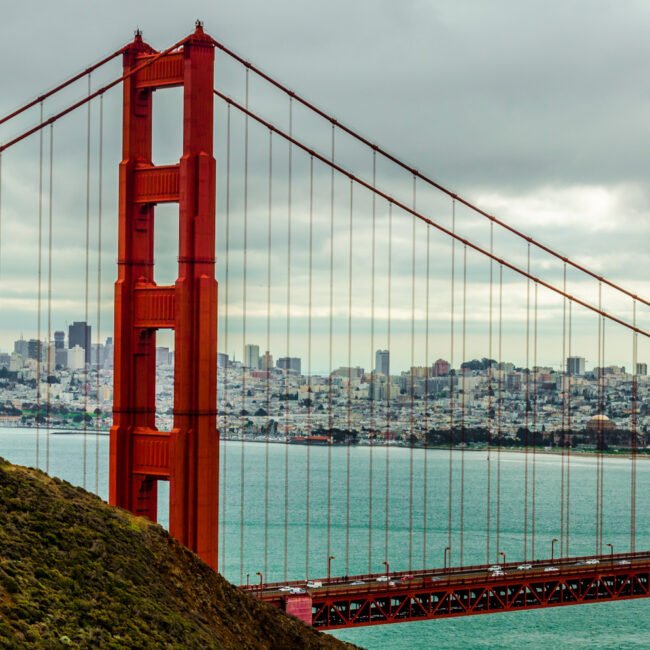 After this bodily purification, we were completely okay again, we rejected the idea of booking cheaper accommodation somewhere in a smaller town around San Francisco, and we were ready to spend the night wherever it came. But it was still our goal to get as close as possible to San Francisco, which we wanted to run through at least in one day, tomorrow. One place I found through freecampsites.net kept nagging at me. It was a possibility to spend the night, probably on free parking, right behind the Golden Gate Bridge. Since there are no other camping options in the area, the website only offers some parking lots, so why not go directly to the one that is closest to our goal, that is, even behind it and probably with a view of the icon of San Francisco. I knew that you don’t pay for crossing the bridge out of the city, and so we decided to try it. We arrived only after dark, and it got quite cold, windy, and it was also raining. But the place for spending the night in the car was really great, it’s just that even in such bad weather, quite a lot of tourists were going there, and it was quite busy. From time to time, we watched some strange people and cars, but the police were always present in the parking lot, so we didn’t feel fear. We were definitely not the only ones who planned to spend the night here, but my eye was caught by a young couple of surfers, who came to spend the night here in an old VW bus. The best thing about it all was that we were falling asleep with a view of the beautifully red Golden Gate Bridge in the background, which was lit by the hilly San Francisco. I would definitely choose this place to spend the night in the car again.