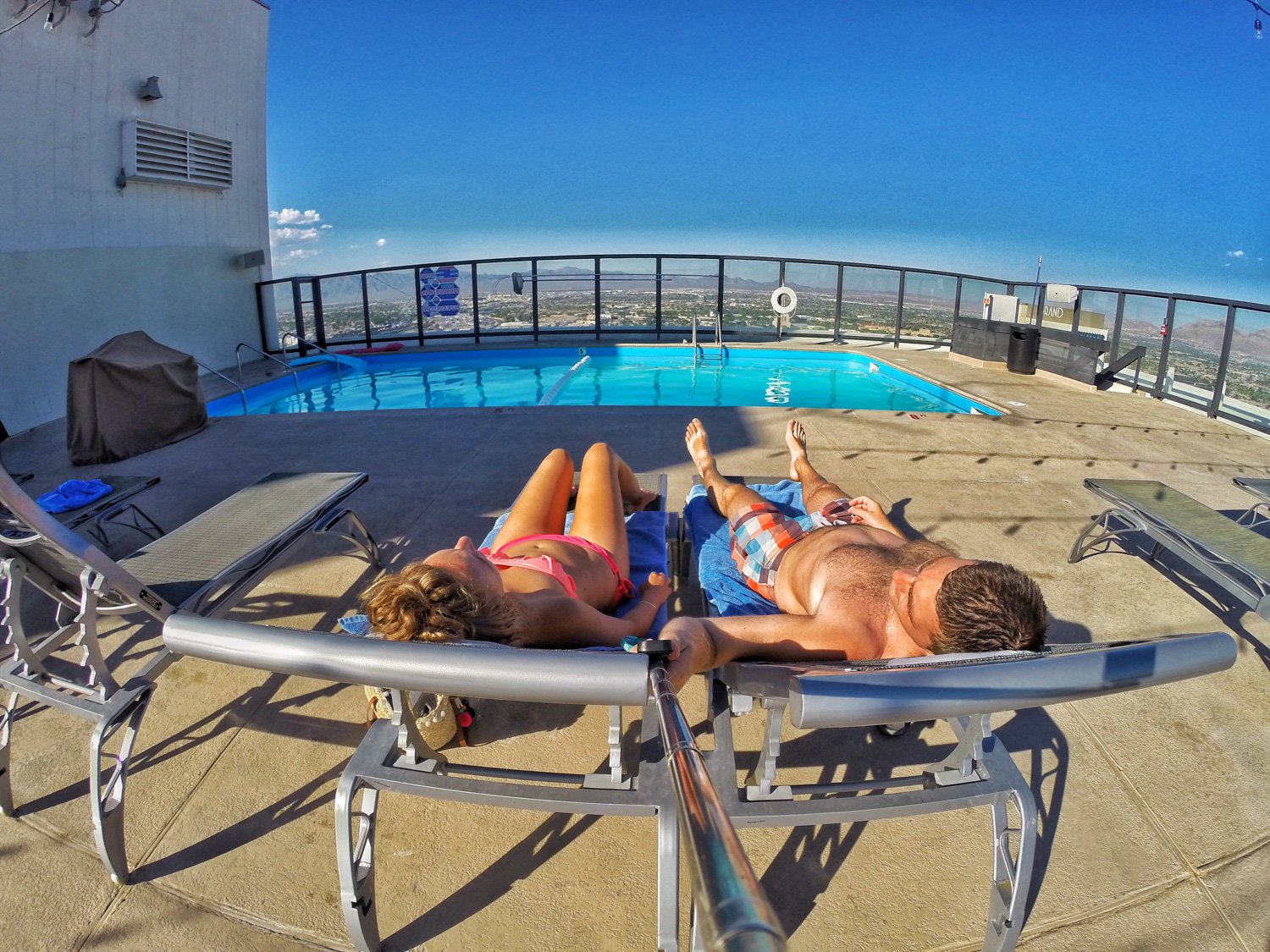 Edit TemplateThis is exactly what we needed. In these three days, we had everything that helped us forget the unpleasant events and tuned us to enjoy the journey again. Shopping and some new things, which made us happy and only strengthened the fact that there is definitely no point in mourning over clothes, were also a matter of course. It went a bit into the money, but we didn’t think about it very much, and in essence we didn’t even have to, since starting with the stay in Wall and subsequent travelling through the national parks, our costs nicely decreased and a quite decent reserve was created. After shopping, we relaxed by the pool, where, to our amazement, almost nobody was and at the same time it was quite nice, with a really great view of the hilly surroundings of Las Vegas. And the evenings belonged to the already mentioned soaking up the atmosphere and experiences on Fremont Street Experience, with occasional detours to nearby hotels and casinos.