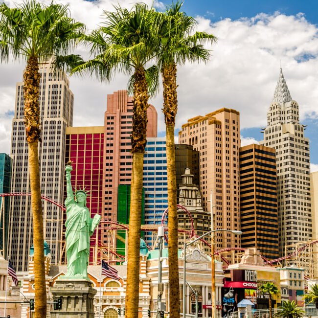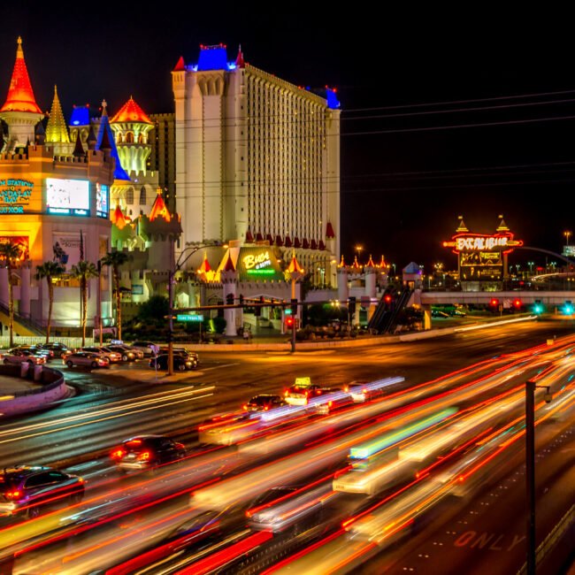 Edit TemplateThe journey started to pass by quite quickly, and we were enjoying it. When driving on empty highways through hot and parched land, I had a much more American feeling than when dragging along the coast with English weather. Moreover, we were heading to Las Vegas, which is a symbol of everything possible, only not boredom. In this direction, we were passing huge oil fields, certainly also with hundreds of oil rigs. The passage around was again a strong experience, again something new that this American road trip brought me. Also, the arrival in Nevada from this direction was magnificent. We were greeted by a huge resort with casinos, where, however, we were most interested in a brutally looking roller coaster. Lenka didn’t like it at all, but I said that we definitely have to come here and try it, since it’s only a stone’s throw from Vegas. After reading some reviews of this coaster, however, we preferred not to do it, since being all made of iron and already quite old, it makes itself felt quite a bit, and many people leave there with back pain. After a day-long ride and a good dose of kilometres, we finally arrived at our destination at half past ten in the evening, in the illuminated downtown of Las Vegas.