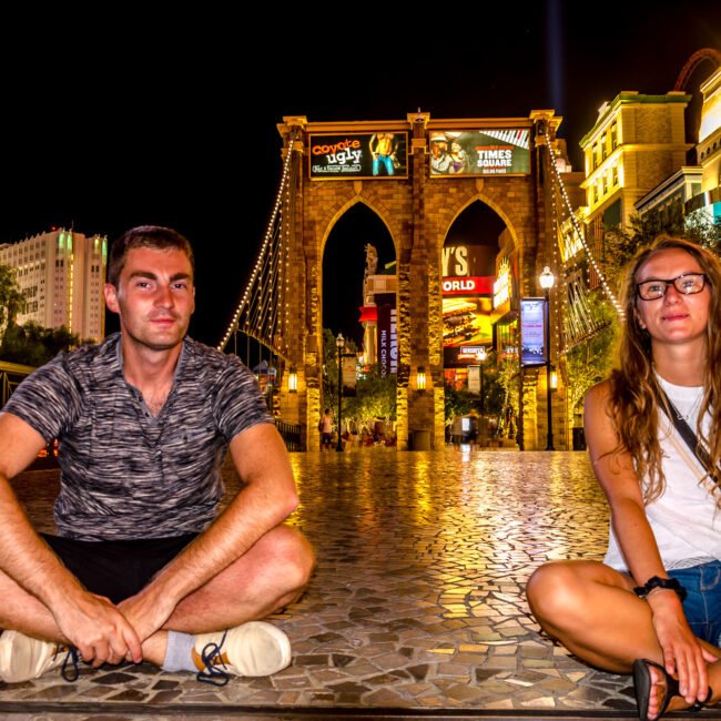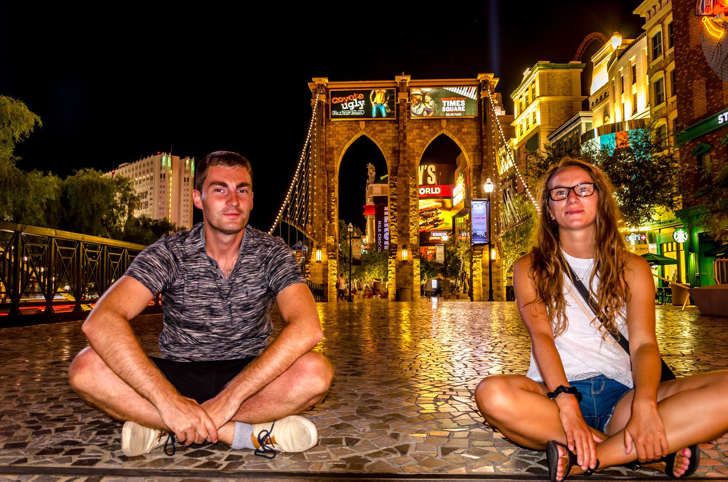 On the third day we had to move to the Hooters hotel, where we had a stay reserved for this term long in advance, mainly because of the wedding, which Lenka had planned all together with the assumption that it would be another unforgettable experience, even though we didn’t want the wedding to be valid. She planned and organised the whole thing so that a limousine would come for us to this hotel tomorrow, on Wednesday, August 31. We didn’t really know what would happen next. But today we finally had an evening ahead of us, when we set out into the streets, that is, onto one street, onto Las Vegas Boulevard, better known as the Las Vegas Strip. We finally had more time for it, we visited a lot of hotels with sonorous names and took a lot of photos. The Strip certainly has a lot to offer; you just have to walk a bit. But it’s worth it. Someone would say that it’s always the same thing, a hotel and a casino under it. But in my opinion, there is so much more to discover there, what to look at and where to gasp in amazement. The beauty, luxury and diversity of the hotels cannot even be described with words, and the camera also cannot capture everything; you have to go through it and experience it. Probably the most amazing experience is the fountain in front of the Bellagio hotel, where we also spent the most time, probably so that we wouldn’t forget about it so soon.