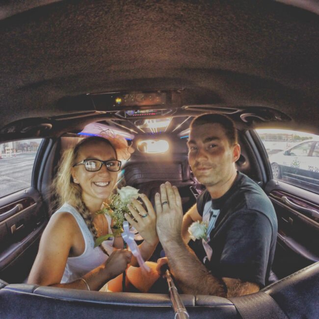 After lunch, we got ready and a little nervous, but armed with a vodka with juice in a plastic bottle, we went to the hotel at the agreed time, where the limousine was supposed to come for us. When Lenka was planning this wedding for us, she was choosing from several possible packages, including various services. She liked the package for approximately $200 the most, which included, in addition to the ride in the limousine, a ceremony in the chapel, a bouquet of flowers, a photoshoot and a video. The ride in the limousine lasted quite long, and we enjoyed it to the fullest. But then the ceremony in the chapel was quite disappointing. Probably also because we didn’t even get out of the car, we just parked near the window at the chapel, from where the governor stuck out his head, and we repeated what he was saying after him. Behind the governor stood someone who was filming the whole thing, and in the limousine opposite us, a photographer was sitting and taking photos of us. In conclusion, we were asked for a tip, which was supposed to cost us a total of 90 dollars for the driver, the governor and the photographer. We gave them $40, saying that we are travelling low-cost and we don’t have more money. They didn’t really want to believe it and didn’t understand that someone comes to Las Vegas without money, but we didn’t care, and they didn’t deserve even that much for the quality of services. The ride in the limousine back to the hotel wasn’t as interesting to us as the previous one, partly probably because we ran out of vodka and also because we evaluated the whole thing as quite embarrassing. But we have an experience, which is not so common for Slovaks, and also some souvenirs, which will remind us of our first wedding, the wedding in Las Vegas.