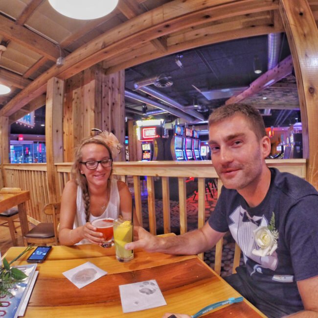 Edit TemplateAfter arriving at the hotel, we still wanted to enjoy our wedding clothes a bit and at the same time celebrate a bit. At the bar, where we were served by the famous Hootersky, we ordered some drinks and discounted roasted wings. From time to time, we heard some congratulations and registered smiling glances. Fed and again a bit in the mood, we went to get ready so that we could set out into the streets. We were finishing the remains of the vodka and were walking towards the Strip, when we realized that we actually don’t want to walk around the hotels at all, or look for some interesting bar with acceptable prices, and it is quite enough for us to stay in our hotel, where it is not that bad. We had fun our way, played some slot machines, where we were getting small beers for free, bought something and in the end ended up again with drinks and wings. They mixed up our order a bit, and so we had a double dose of wings and fries for that discount price, as a few hours ago. We weren’t that hungry, but taking it to the room was not possible, because we would be strange again, having a “picnic in the room”, and so I decided that I would eat all 20 wings. Lenka helped me with about three, but otherwise they were quite going into me, and I didn’t have the feeling that I was overdoing it, even though I knew for a long time that I had enough. In the end, it all weighed down on me at night, and it was quite difficult for me, because of which I couldn’t sleep.