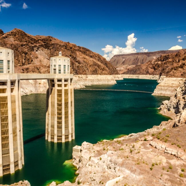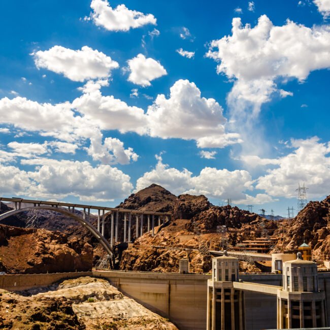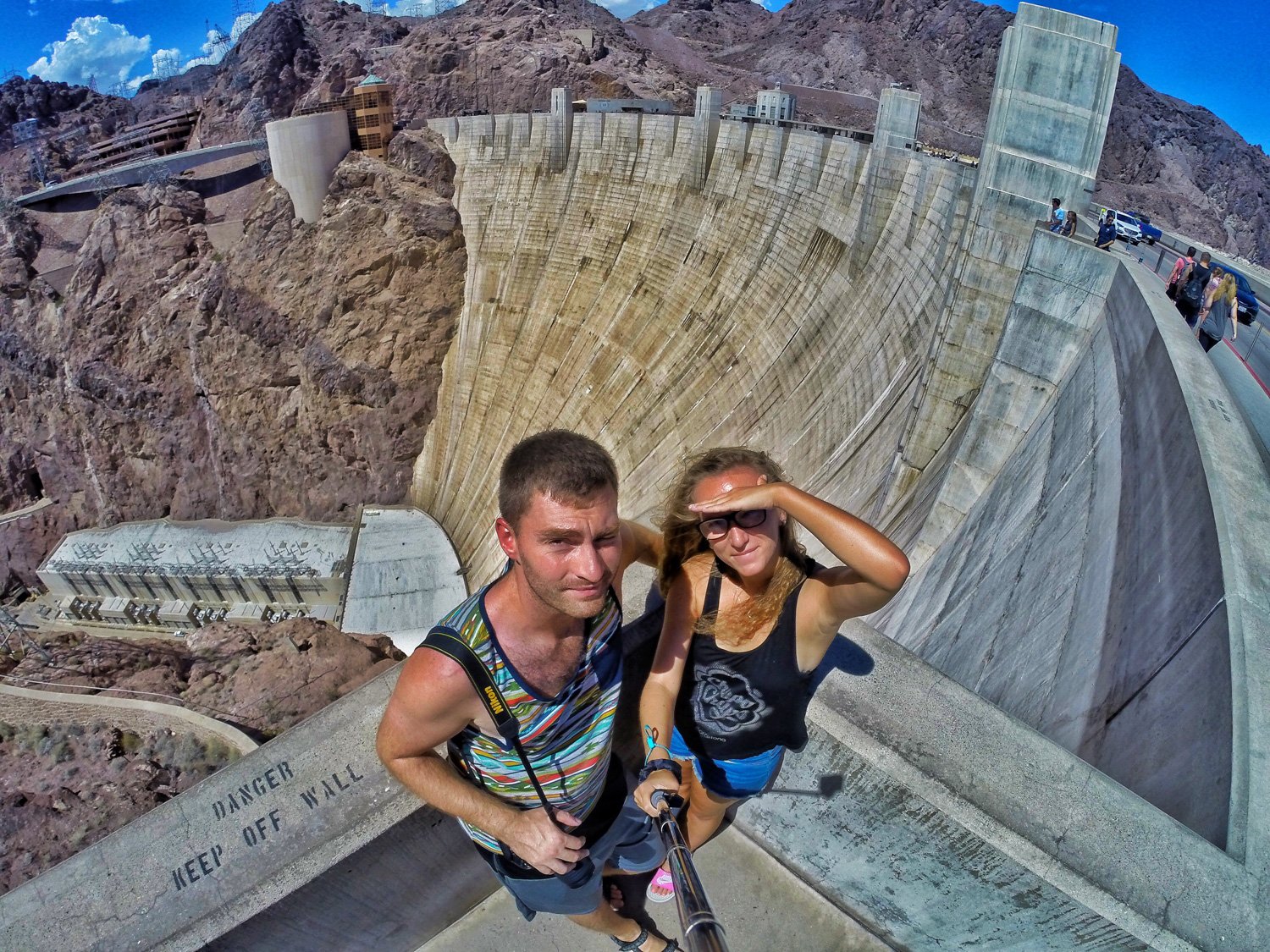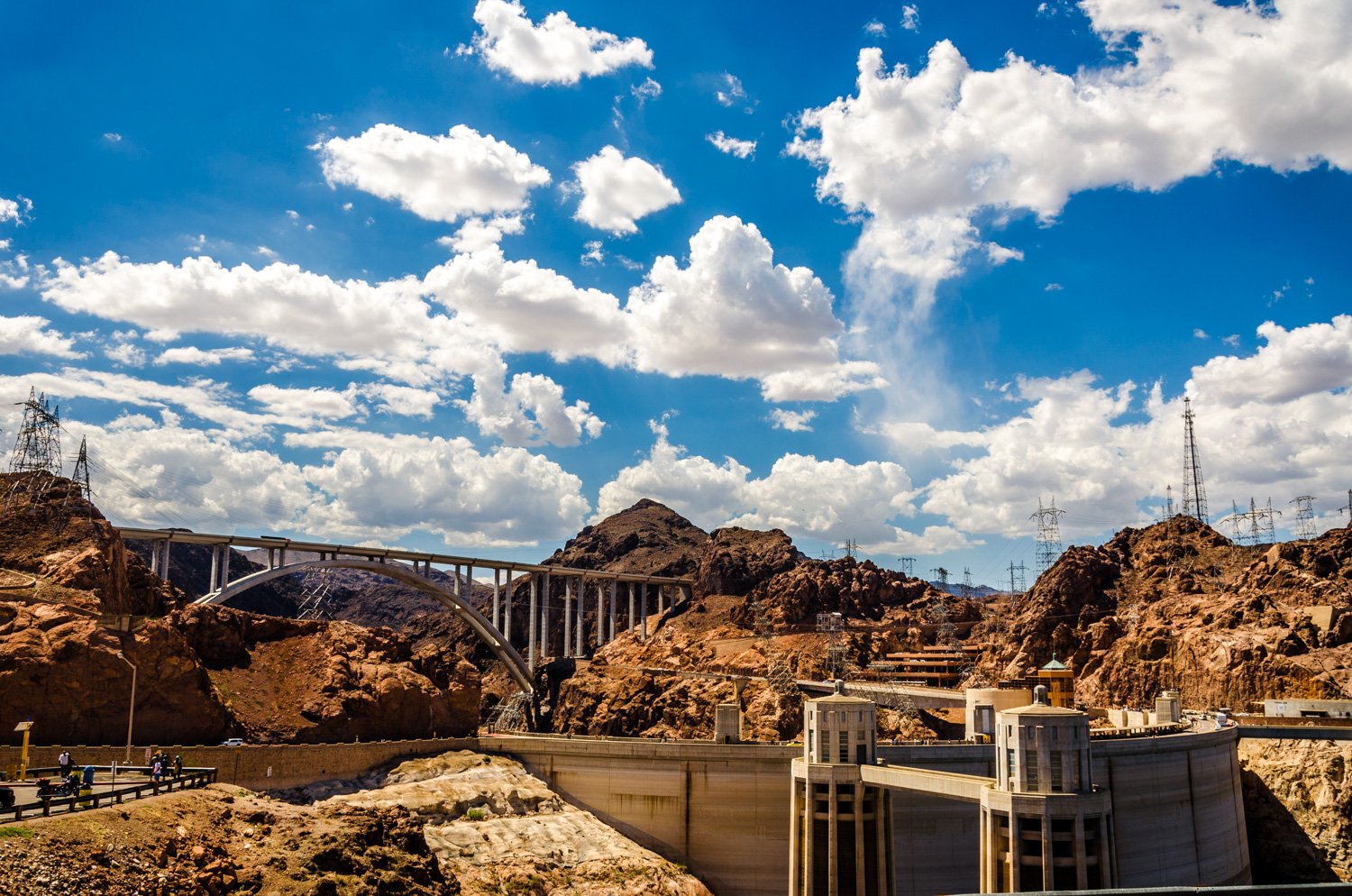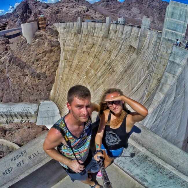 After a few kilometres behind Las Vegas, the first stop was waiting for us, namely the Hoover Dam on the Colorado River. The air temperature was terribly high, and Lenka came up with the idea that she felt bad from the heat, and she didn’t want to walk, do anything, or even just be in the sun. However, I pulled her out for a while, and we walked around a bit. For us, there wasn’t much to do there anyway, but it’s a place that you definitely have to see. Paradoxically, I was most interested in the huge bridge, which is part of the highway and towers high above the entire dam and the Colorado River. We didn’t stay long at the dam, and I was already enjoying the ride across the bridge, from which, unfortunately, unlike my expectations, there was absolutely no view due to the high concrete edges.
