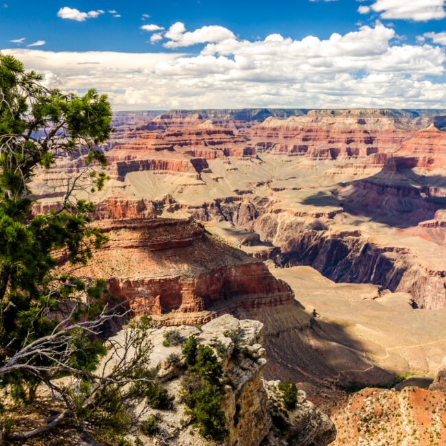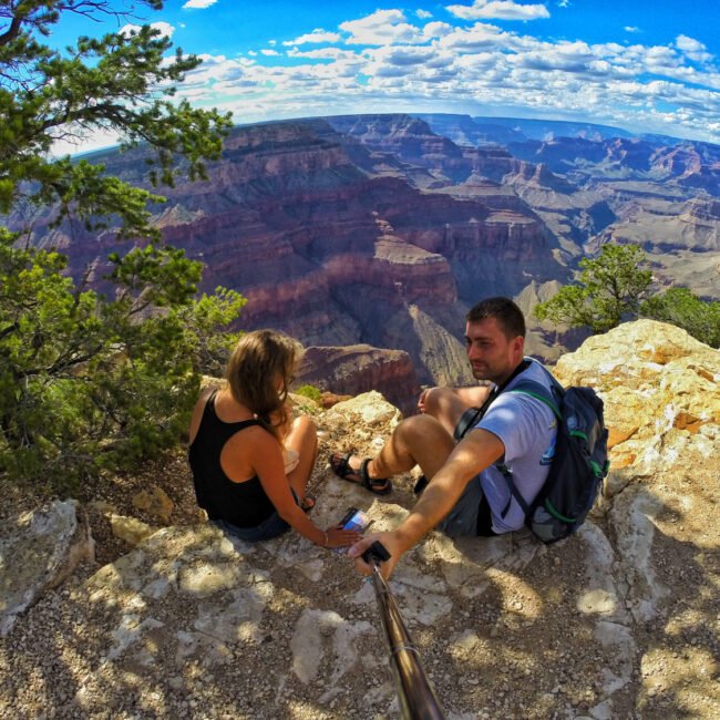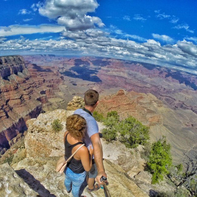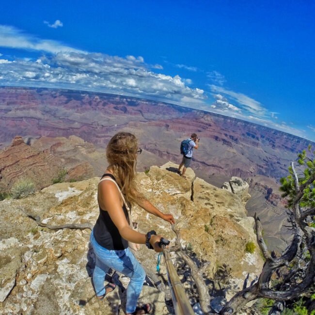 The Grand Canyon is really magnificent, incredible and beautiful. At first, we just went over this place and took a number of similar-looking photos. With its area and mainly length of 446 kilometres, its size cannot be captured even with the eyes and realised, even when a person is standing there and especially not from photos. It’s also difficult to describe this valley in the middle of colourful rocks, at the bottom of which flows the dirty brown Colorado River. Here you simply have to come, stand on the edge above the canyon and perceive the whole thing with your senses.