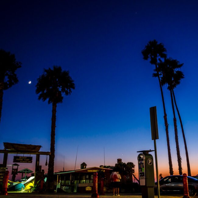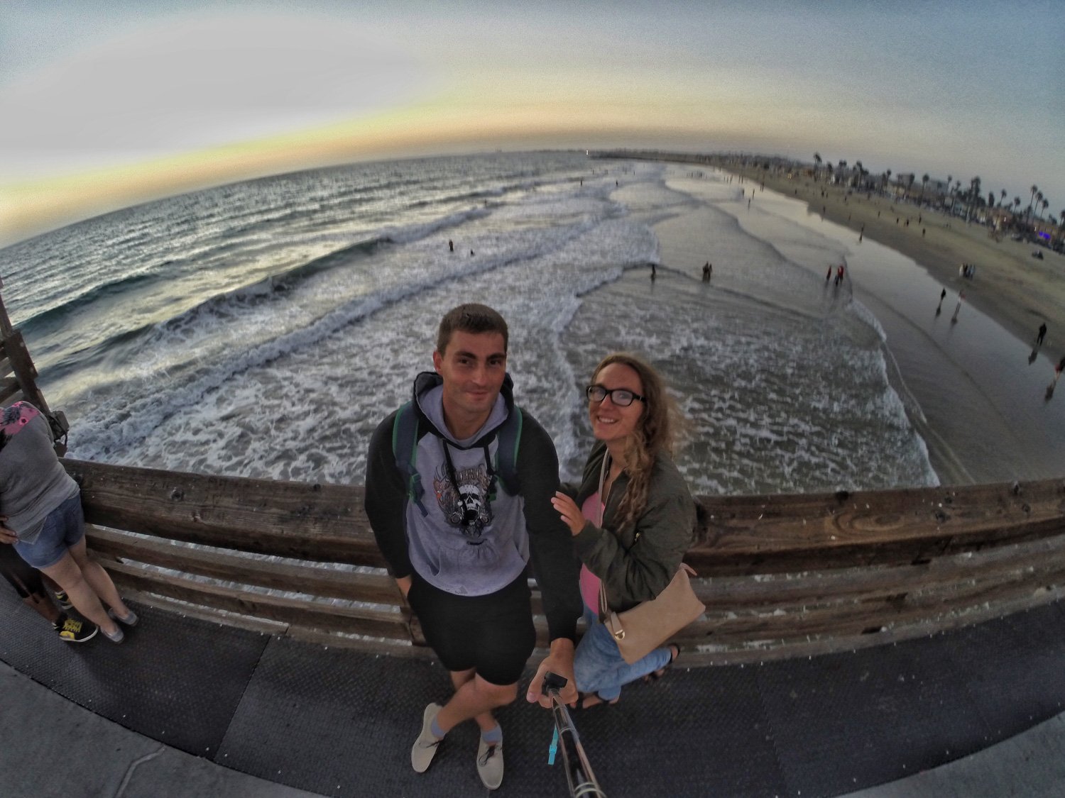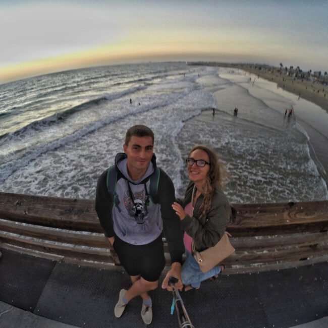 In the Beverly Hills area, we didn’t have anything specific to go for, we just went to drove around the streets and tried to capture the atmosphere of a lucrative area where many famous people live. The streets surrounded by palm trees were perfectly maintained, clean and incredibly beautiful, but we didn’t have much opportunity to see more, since the plots and houses were always behind high walls, which is quite unusual, since elsewhere Americans don’t have fences around houses. After a while, we found out that there is actually nothing to do there, and we headed straight across LA, which took us over an hour, and we passed probably also a hundred kilometres south to Newport Beach, where we spent the evening on Newport Beach Pier and in its vicinity. On the way back north, we planned to visit the illuminated Downtown, because of at least to take a few photos, since otherwise there is nothing to do there. We met a group of Czech women there, with whom we chatted a bit and helped them take a picture.