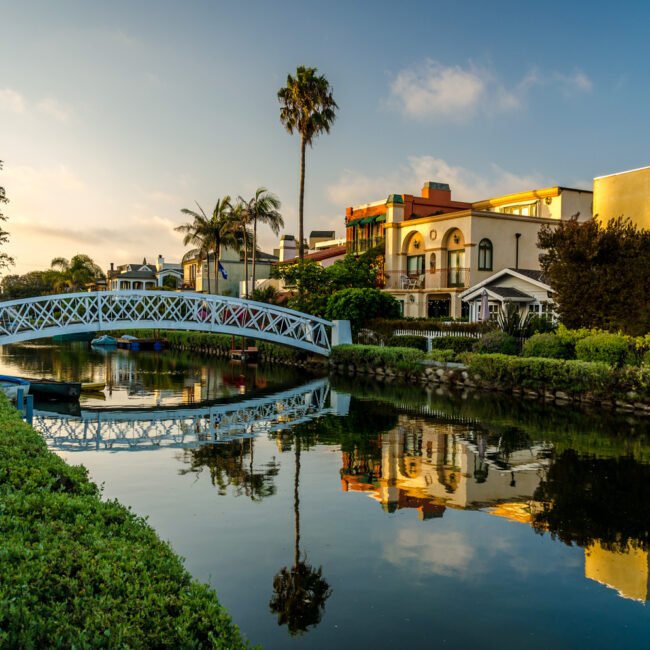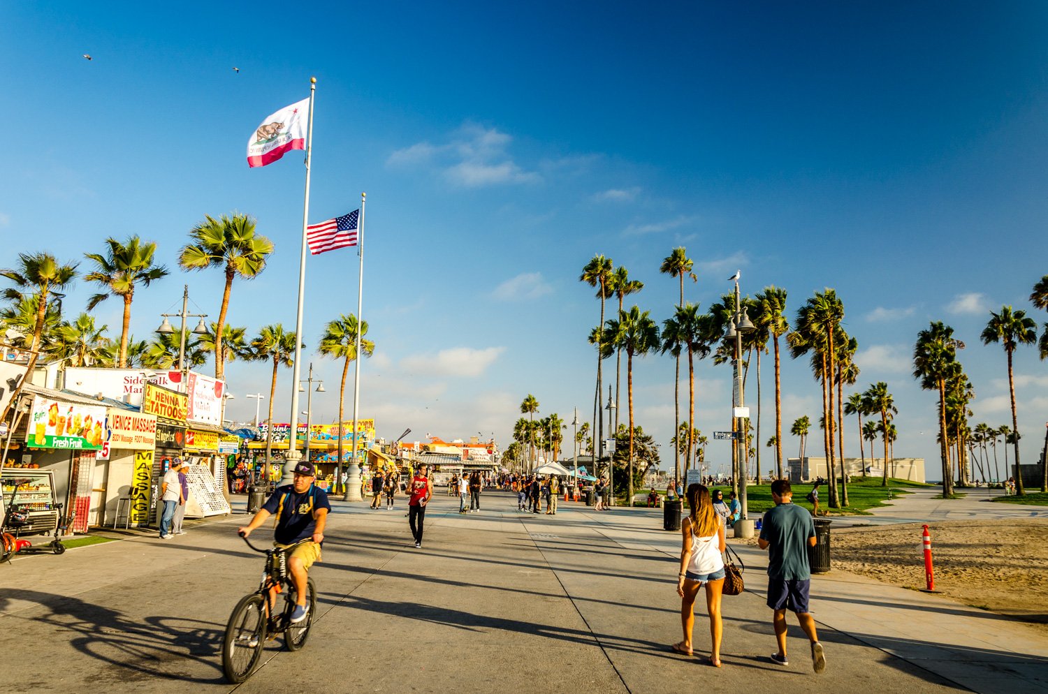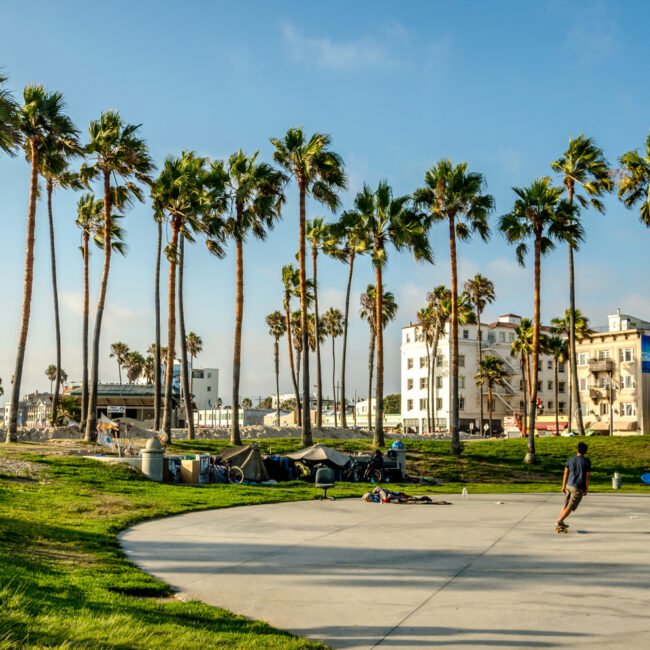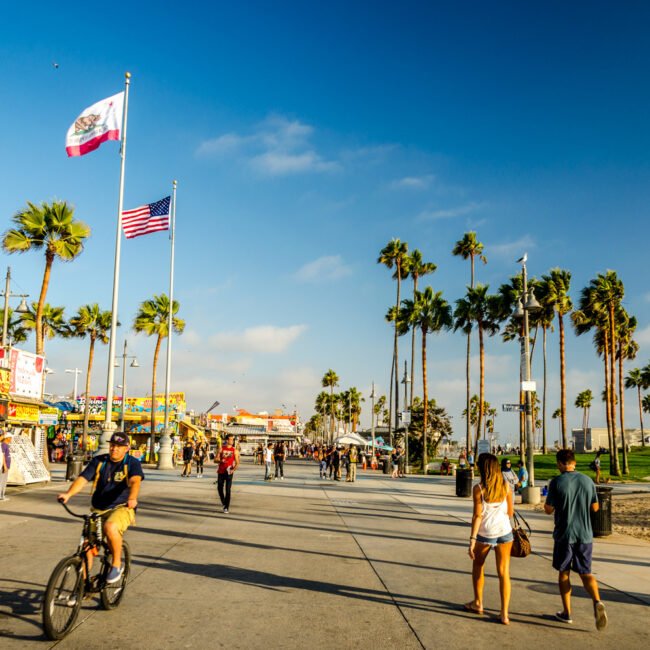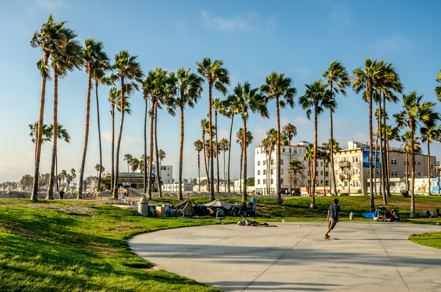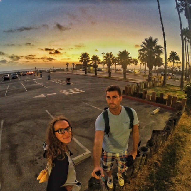 Edit TemplateThe next day in LA, and the last day of our trip, was supposed to be really relaxing. Since we lived near Malibu, we first went there, drove around a bit by car and also went to one of the beaches, where it was quite cold, however. Later, we moved to Venice Beach, where we were until dusk, and for us, it was definitely the best thing we saw and experienced in LA. A beautiful beach, even though even here the water was a bit cold, not as we were used to from Florida, and even the air temperature was not always as we expected, but despite that, we sunbathed for a while and were finally in the Pacific Ocean. Then we strolled along the promenade, which finally had that right Los Angeles vibe and atmosphere that we were looking for here. Where there were no shops and restaurants, there were apartments or hotels just a few meters from the beach, and you could easily see into them. I really liked this style of living, and one day I will hopefully manage to stay in some such apartment, maybe even through Airbnb, who knows. There were several attractions directly on the beach, some skate parks and gyms, but also quite a lot of homeless people and hippies, who had their small tent city here. I had mixed feelings about that, and I don’t know how it is with safety, because after all that happened to us in California, I was looking at everything a bit suspiciously. We also walked through the Venice Canals, where it was different and like an architectural catalogue. Incredibly beautiful houses with maintained small yards, where the most common flower was a black rose. Some houses had the lower floor, and therefore the living room and the kitchen, completely open, without any doors, windows or walls; it would be enough to climb over the fence and sit down on the couch. It was so beautiful that I sometimes doubted whether any people actually live here. We enjoyed the sunset again from the pier, where we concluded that if there were only one place to see again in LA, it would definitely be Venice Beach.